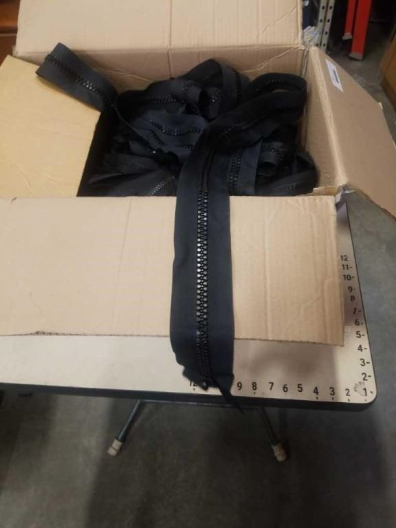 LOT OF LARGE ZIPPERS, UP TO 470 INCHES LONG #10 AND #15 ZIPPERS