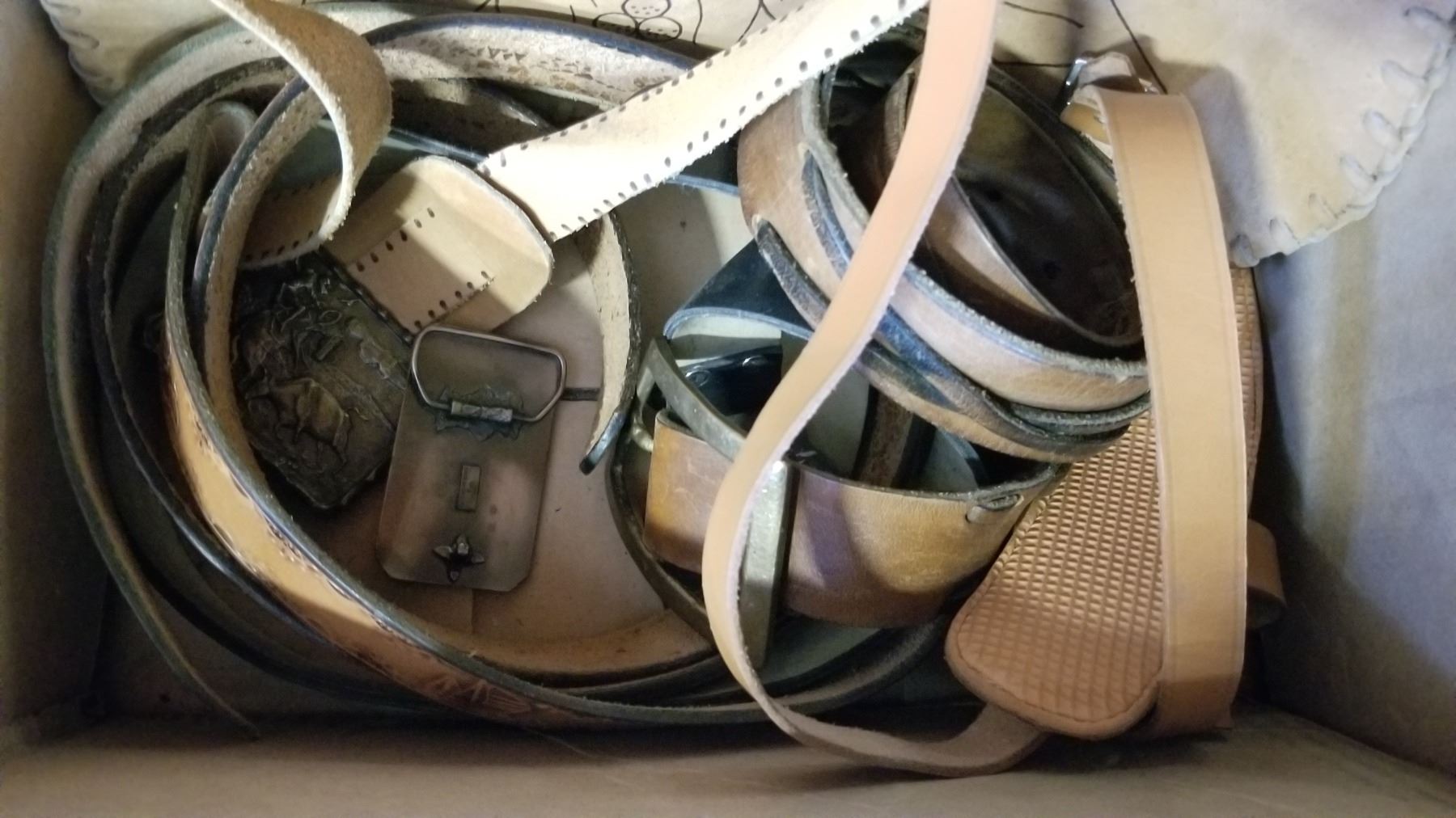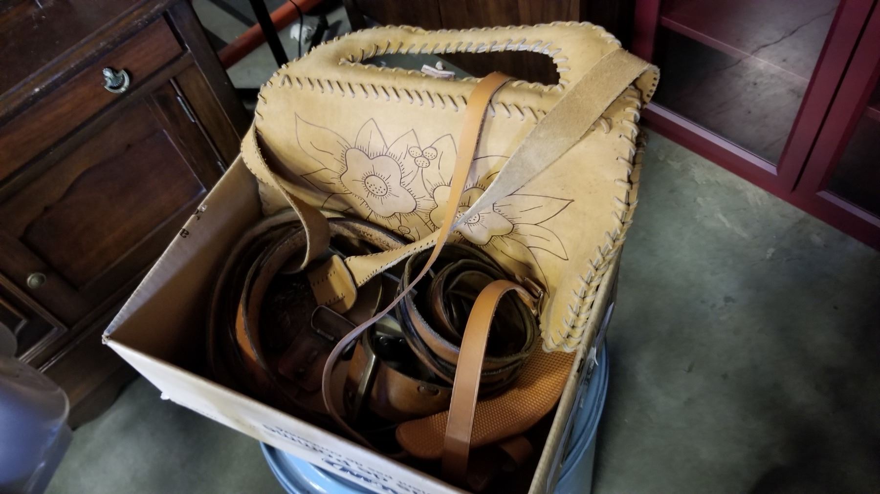 LOT OF LEATHER BELTS AND LEATHER BAG