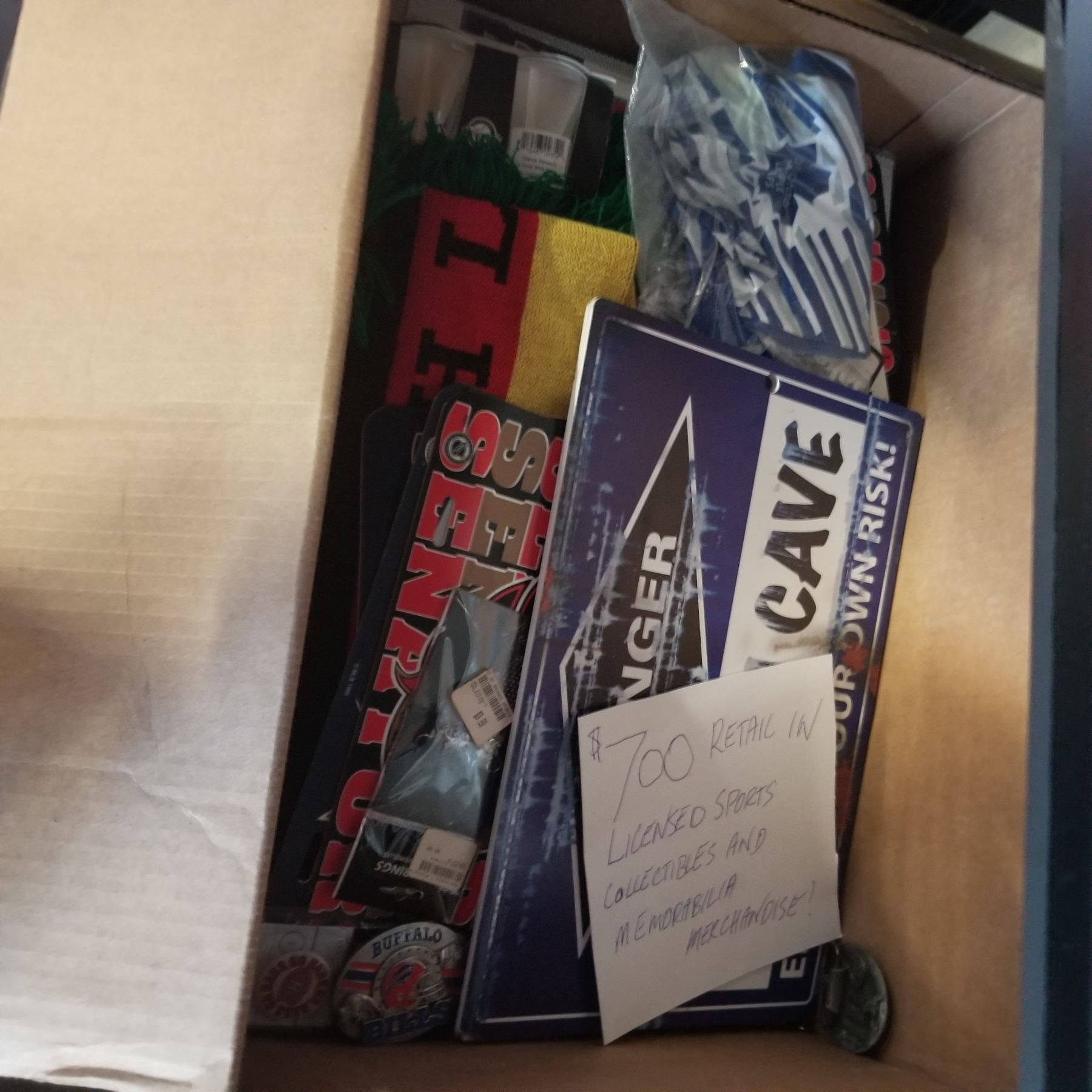 LOT OF LICENSED SPORTS COLLECTIBLES AND MEMORABILIA MERCHANDISE, RETAIL $700