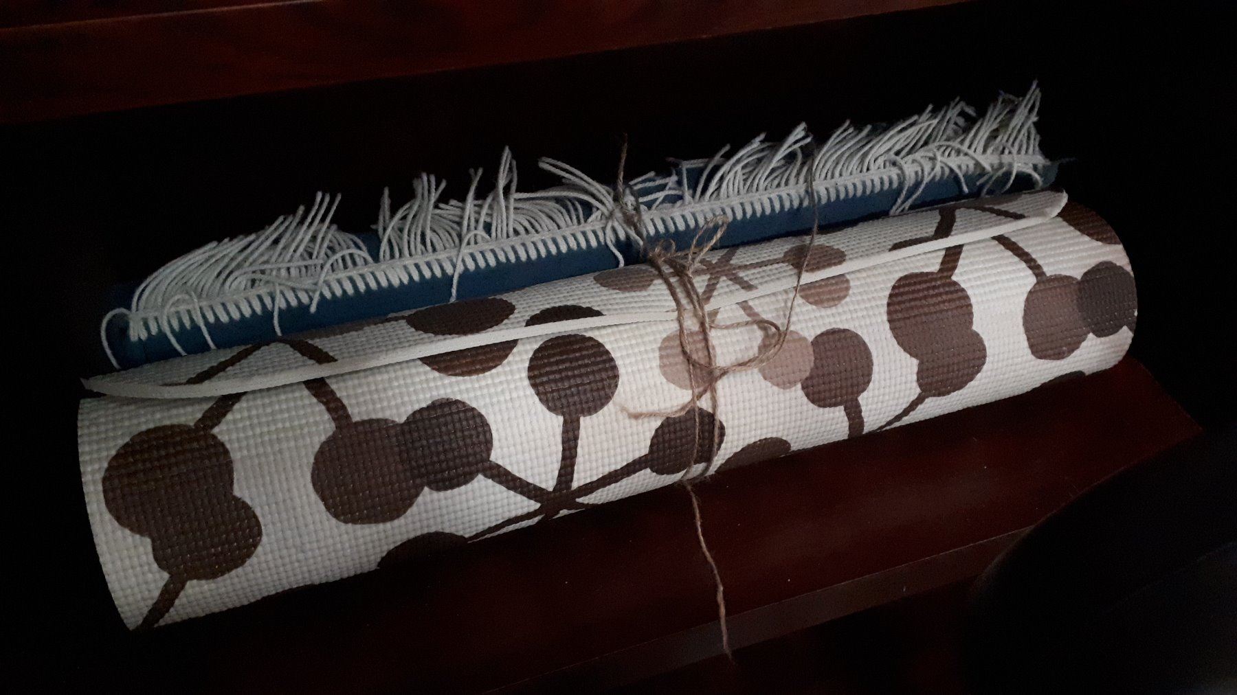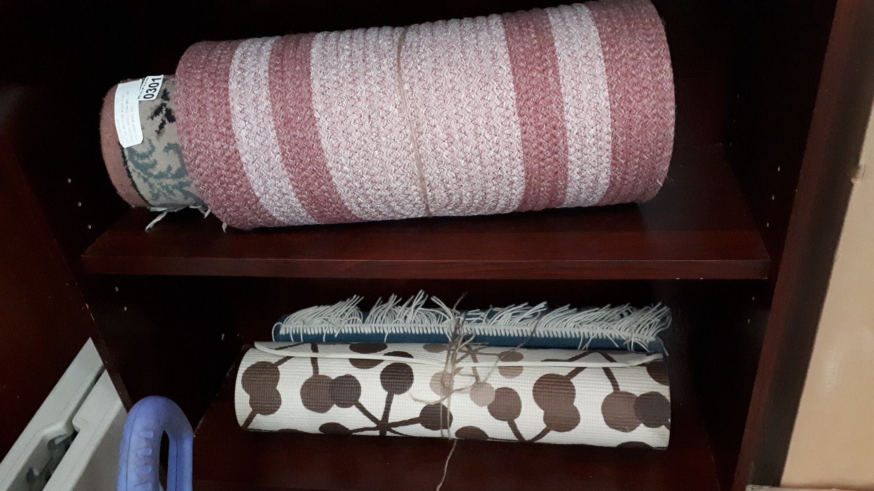 LOT OF MACHINE WOVEN RUGS, 2 BRADIED RUGS, YOGA MAT, AND DESIGNER WOOL RUG