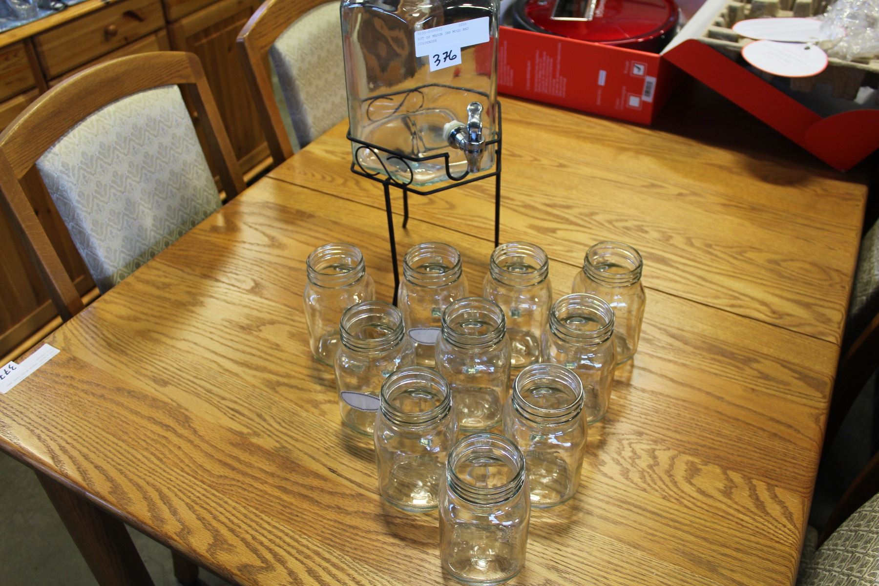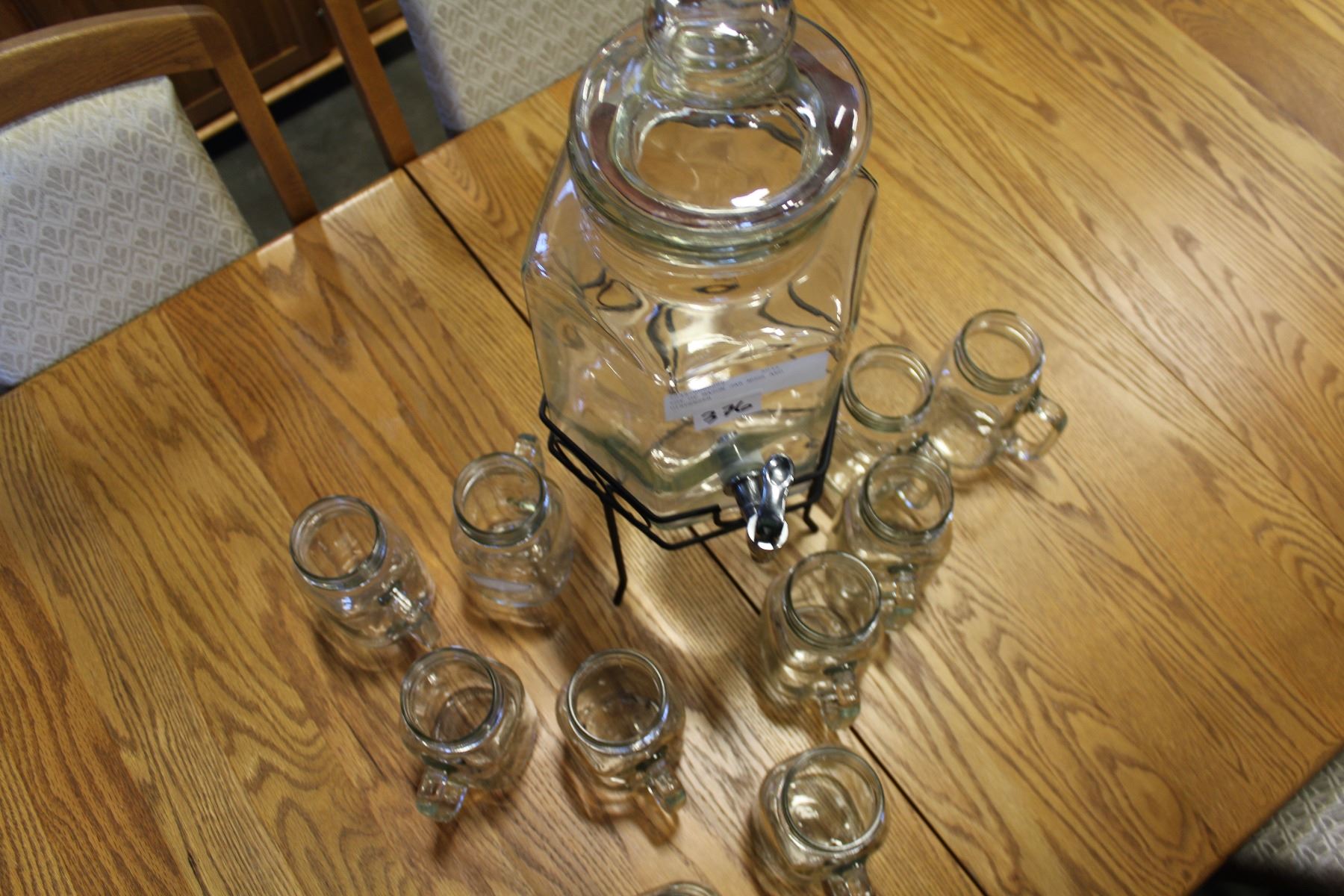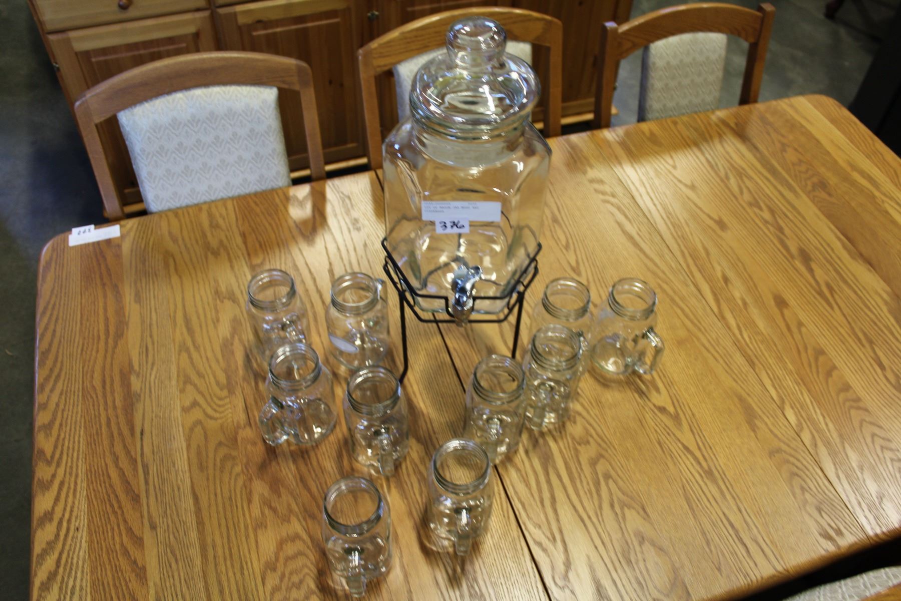LOT OF MASON JAR MUGS AND DISPENSER