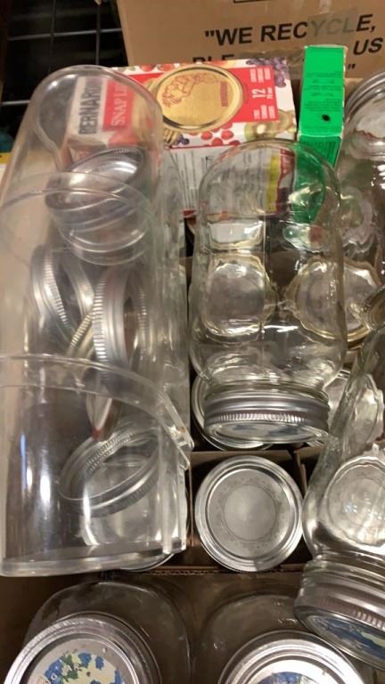 LOT OF MASON JARS WITH LIDS, PRESTO DEEP FRYER AND PANS