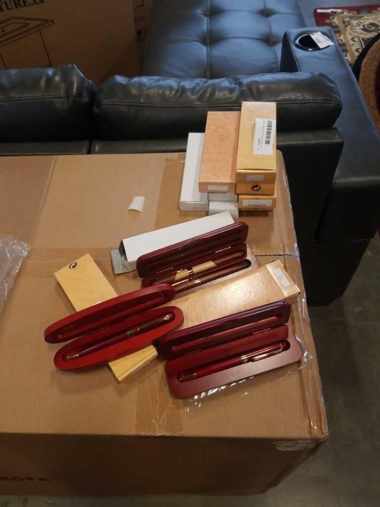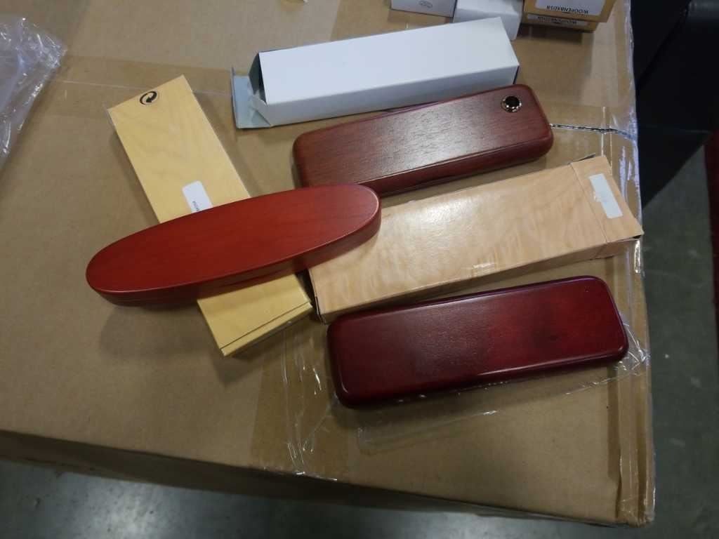 LOT OF MECHANICAL PENCILS AND PENS IN WOOD CASES