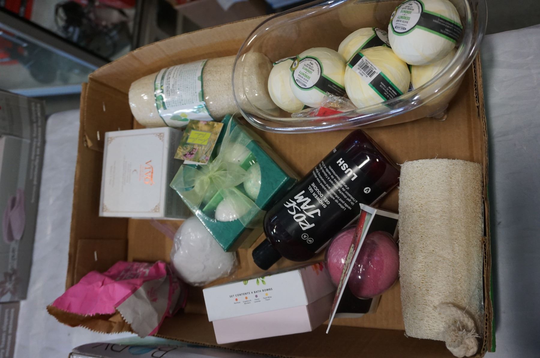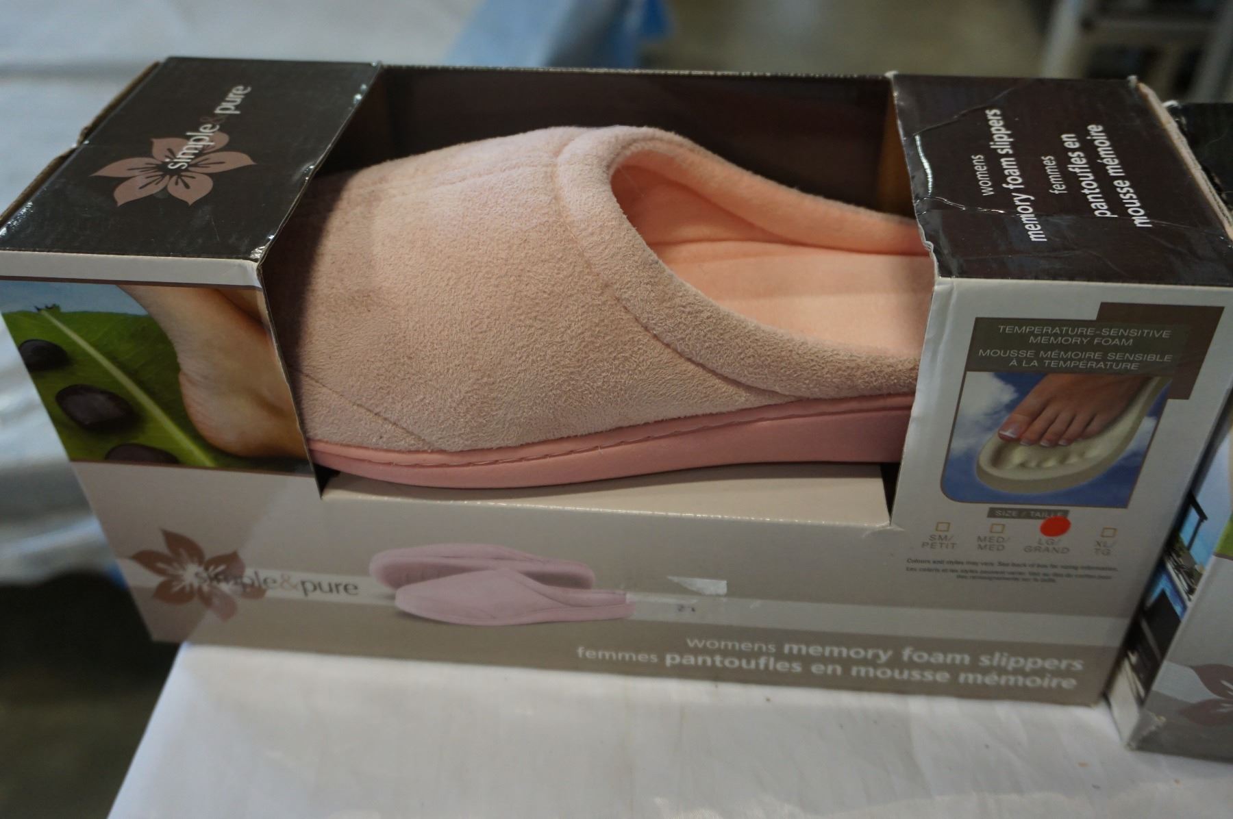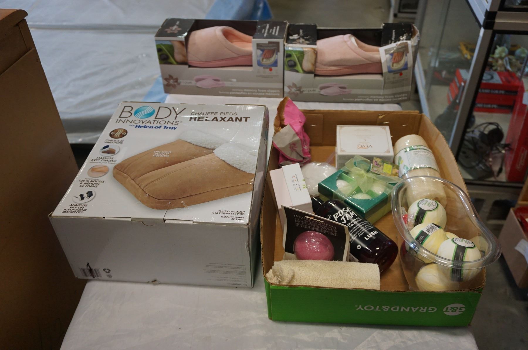 LOT OF MEMORY FOAM SLIPPERS, FOOT WARMING SLIPPERS, AND BATH BOMBS