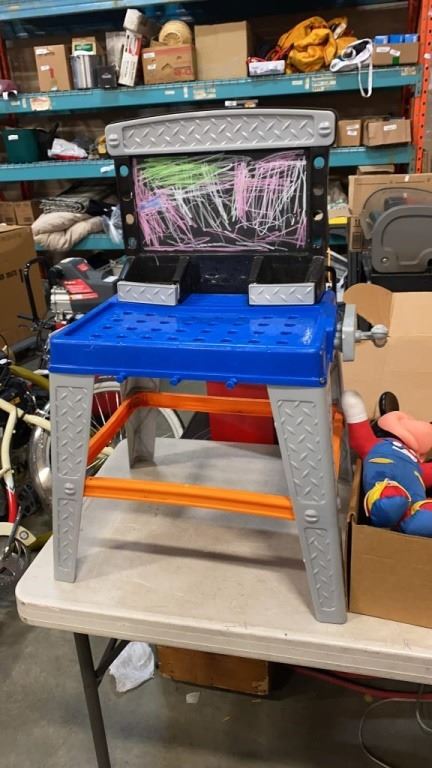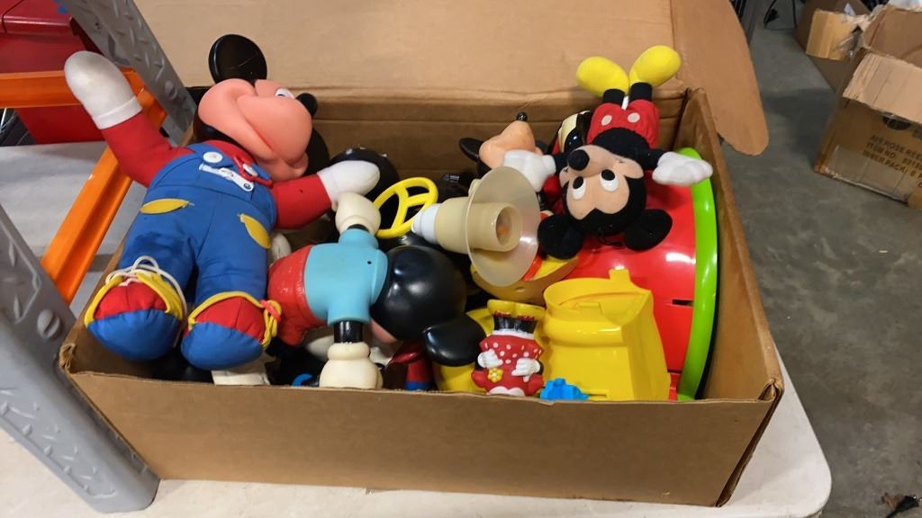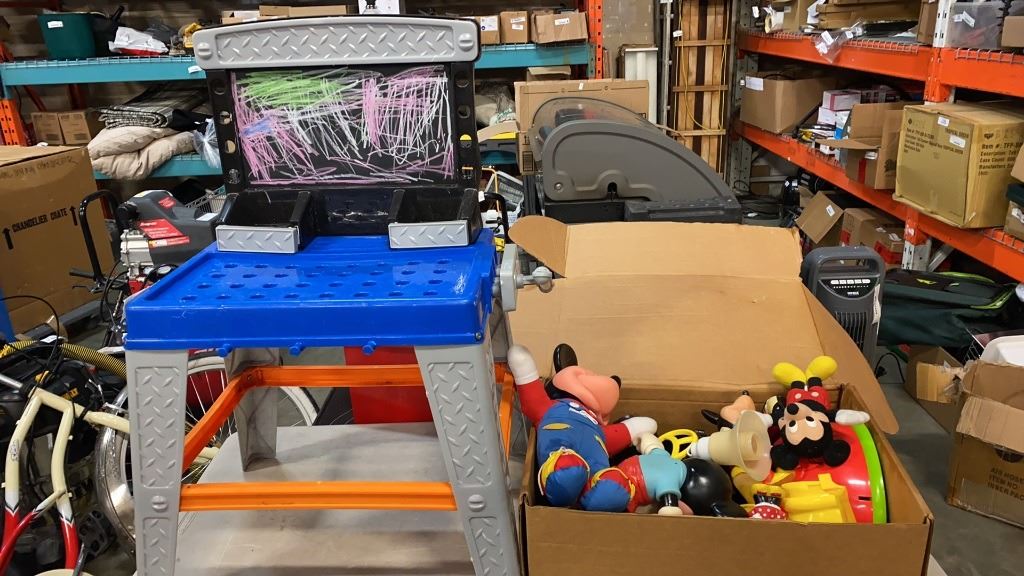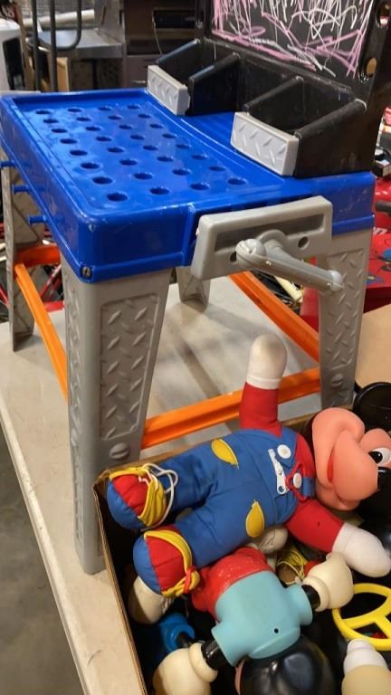 LOT OF MICKEY MOUSE COLLECTIBLES AND KIDS WORKBENCH