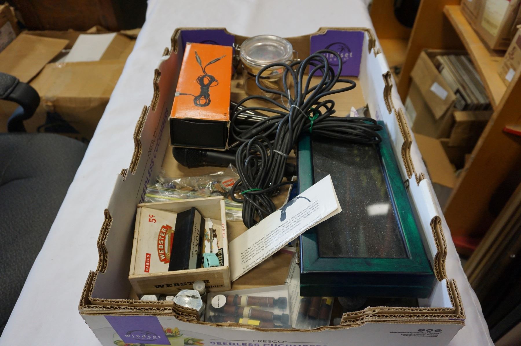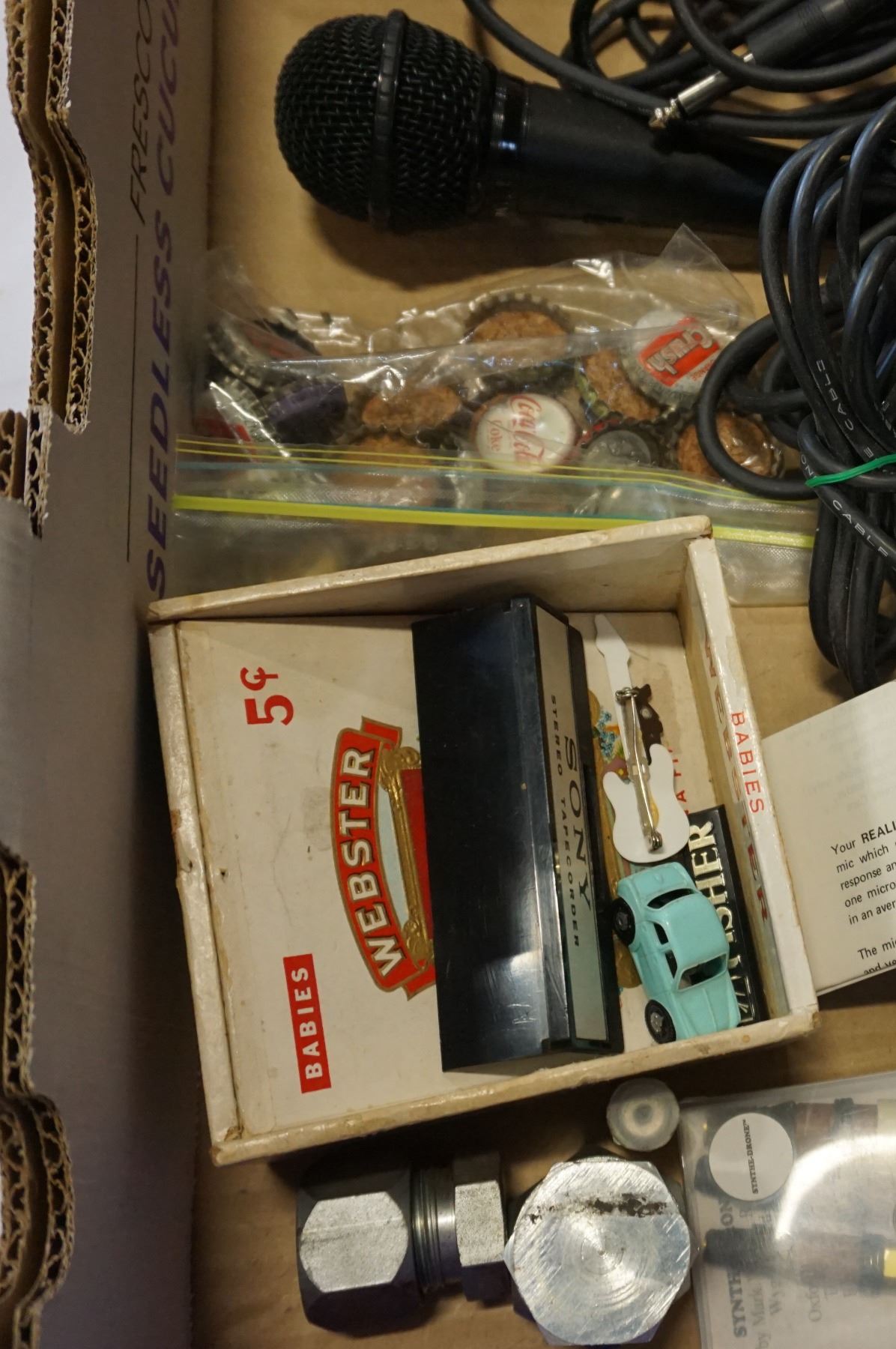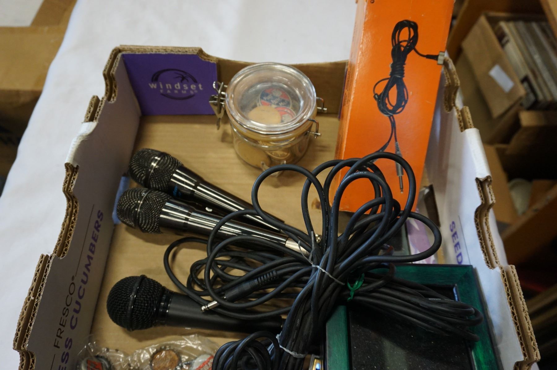LOT OF MICROPHONES, HARMONICA, BAGPIPE VALVES, AND COLLECTIBLES