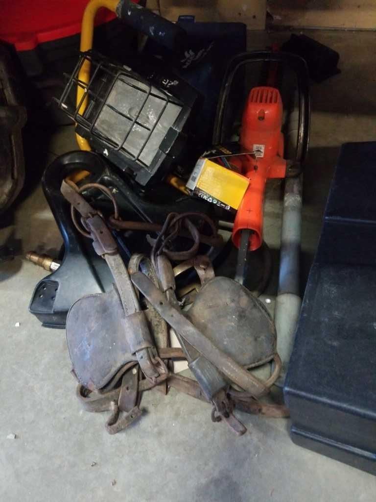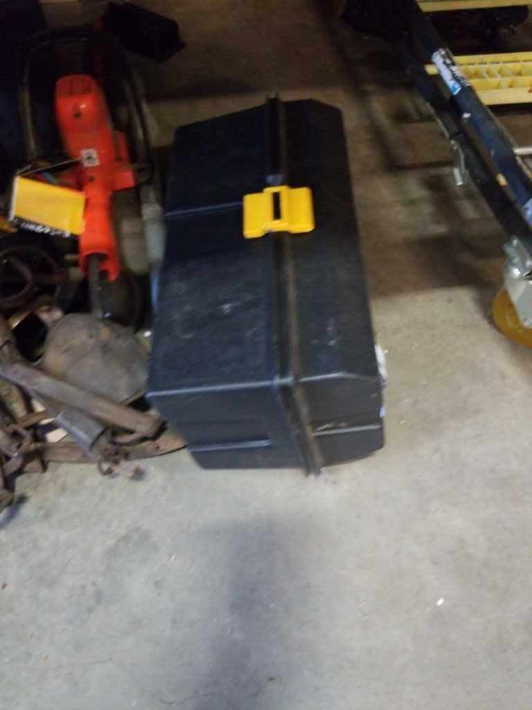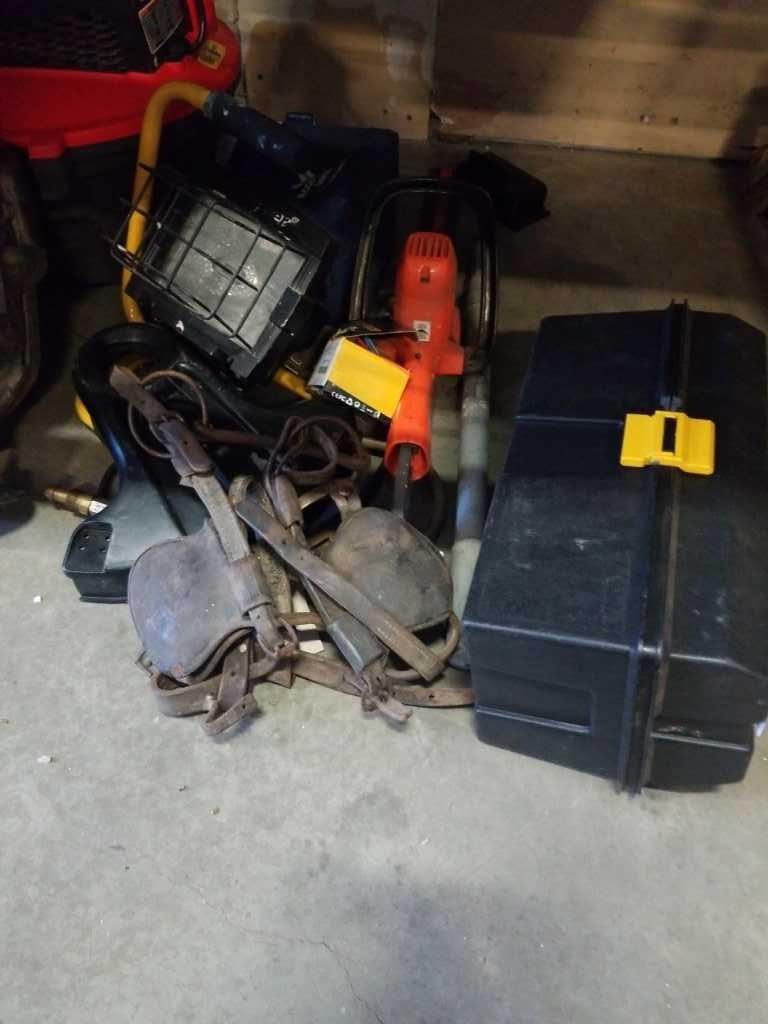 LOT OF MISC TOOLS, TOOL BOX, SHOP LIGHT, ETC