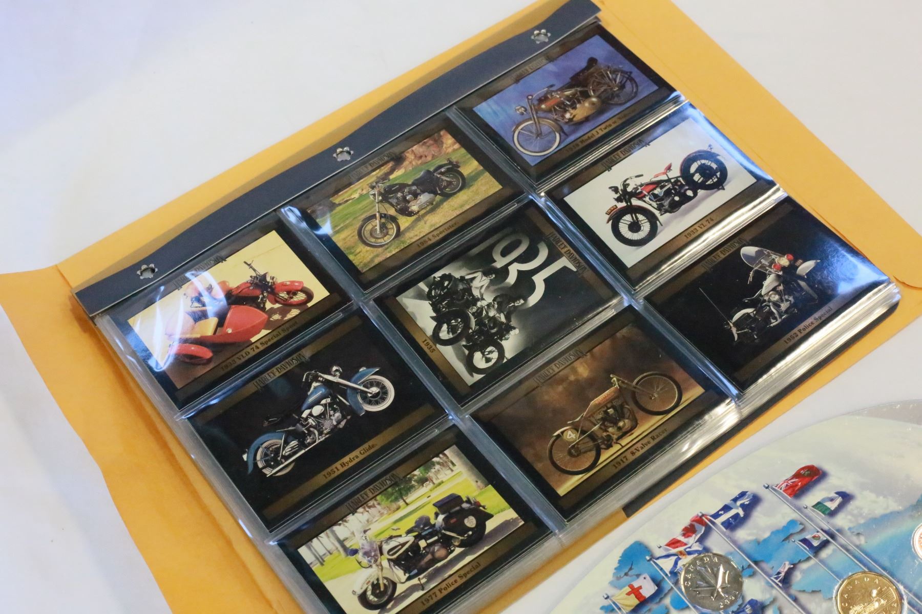 LOT OF MOTORCYCLE CARDS AND COLLECTOR COINS