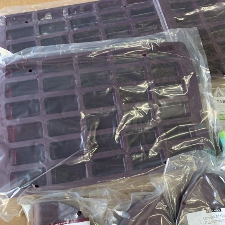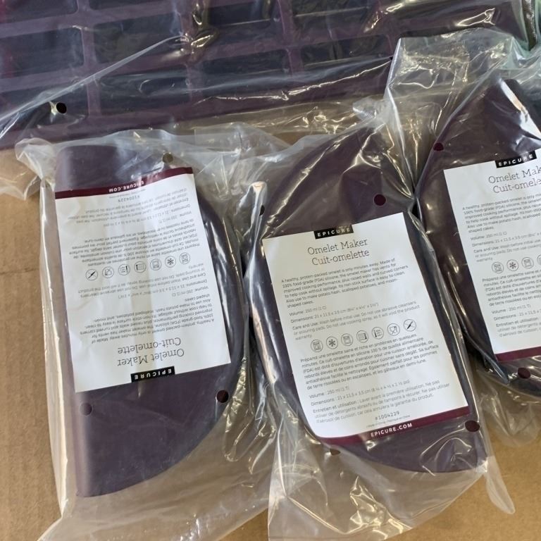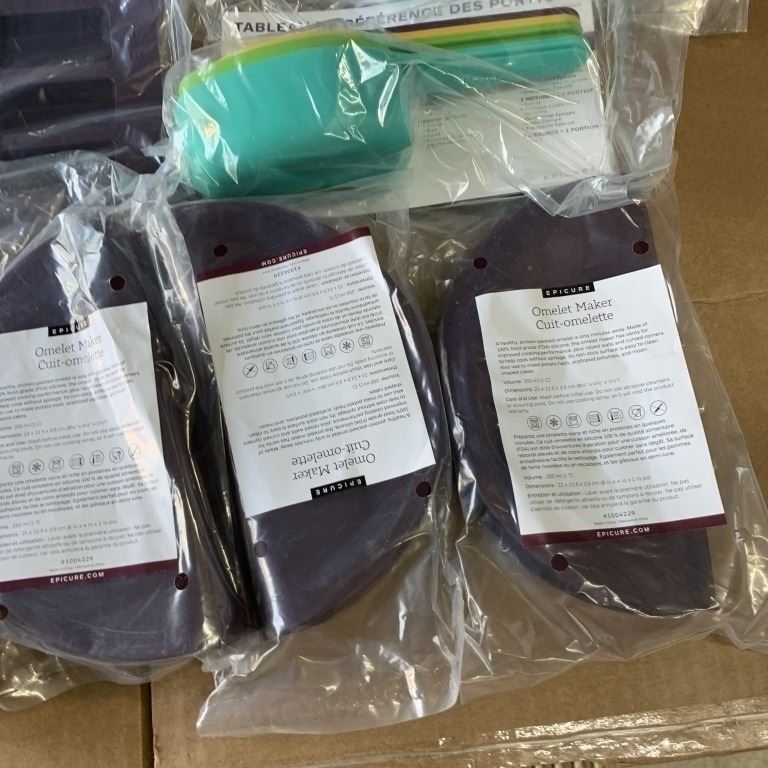 LOT OF NEW EPICURE COOKING SUPPLIES 5 OMELETTE MAKERS, 3 PETITES SILICONE BAKING SHEETS AND 2 SETS OF PERFECT PORTION SCOOPS