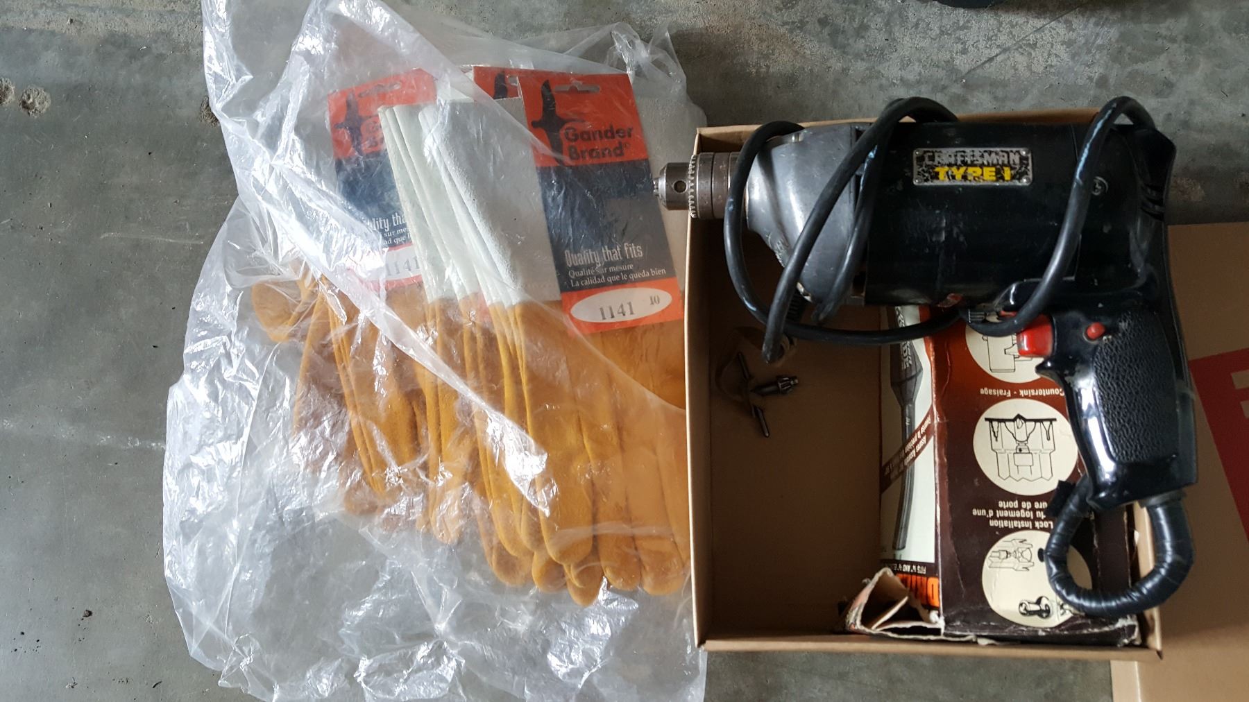 LOT OF NEW GANDER BRAND WELDING GLOVES AND CRAFTSMAN ELECTRIC DRILL