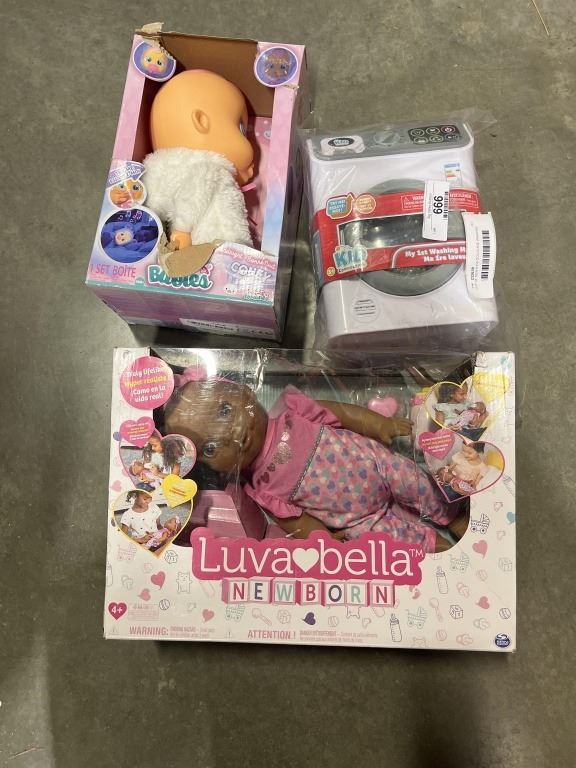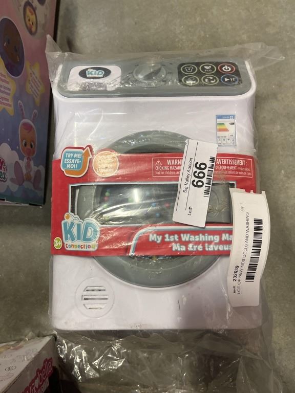LOT OF NEW KIDS DOLLS AND WASHING MACHINE