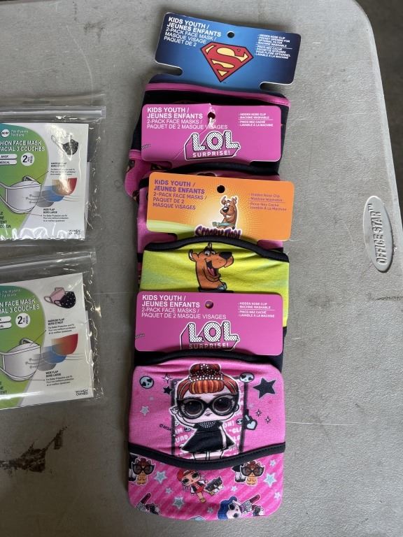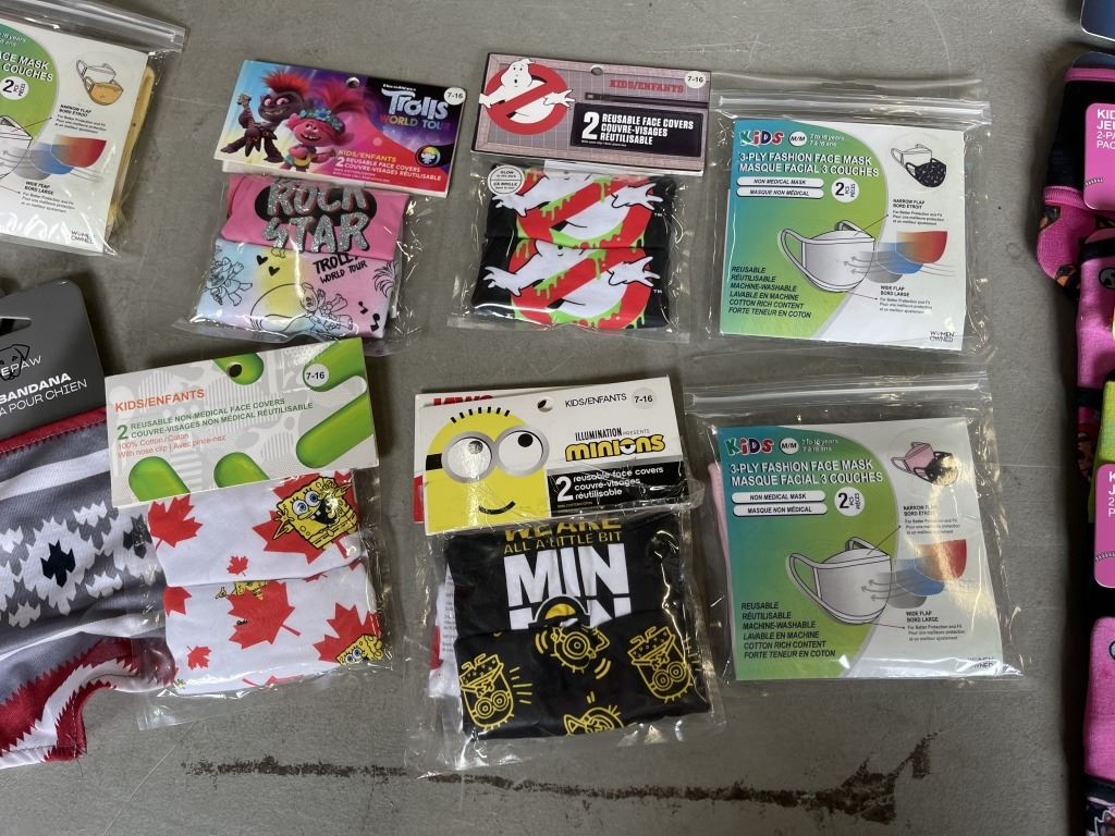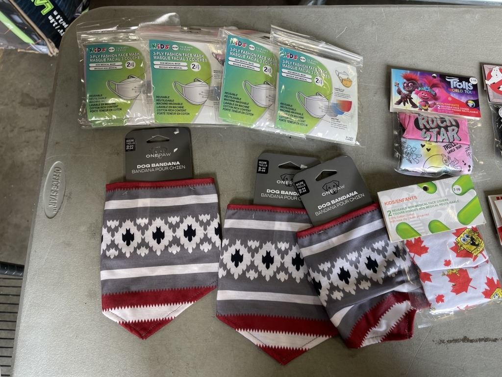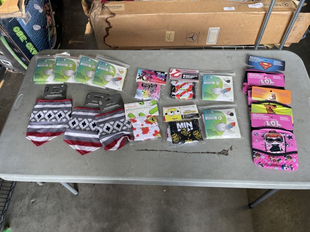 LOT OF NEW KIDS FACE MASKS AND DOG BANDANAS