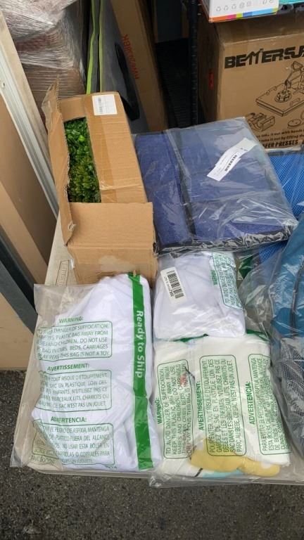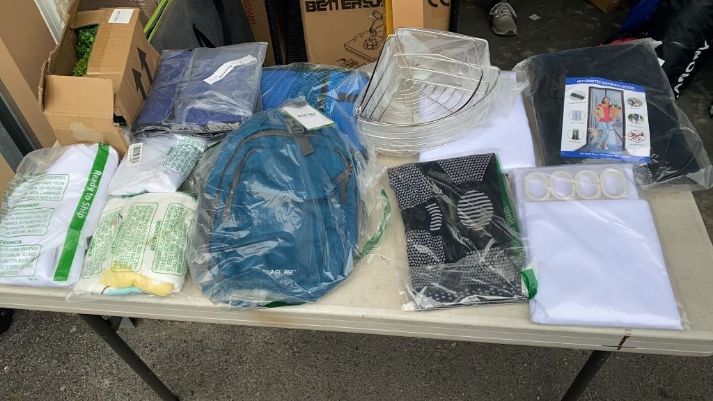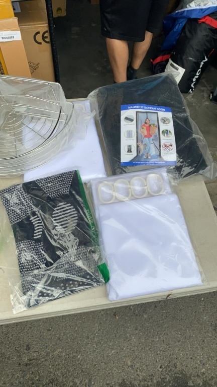 LOT OF NEW MESH SCREEN, SHOWER CURTAIN, BAGS, FABRIC ORGANIZERS AND MORE