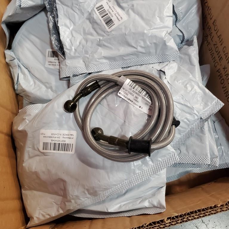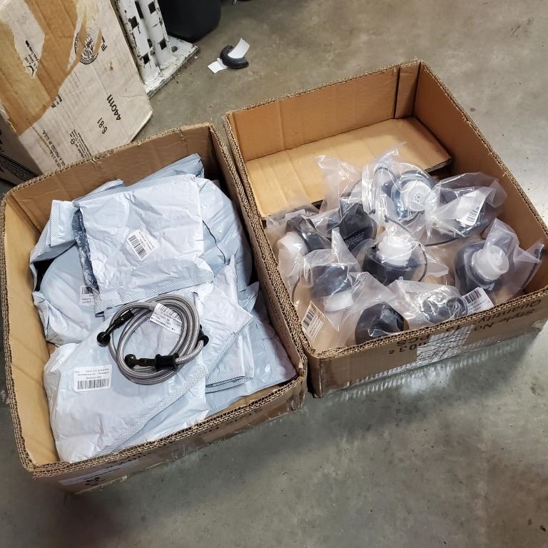 LOT OF NEW MOTOCROSS BRAKE LINES AND AUTOMOTIVE FUEL CAPS
