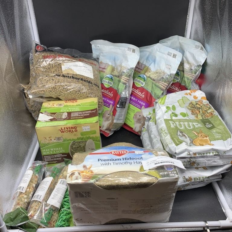 LOT OF NEW RABBIT FOOD AND ACCESSORIES