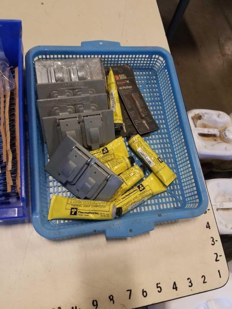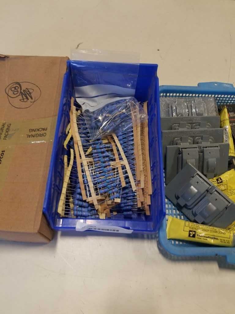 LOT OF NEW RESISTORS, THERMAL JOINT COMPOUND, CAPACITORS AND OUTDOOR OUTLET COVERS