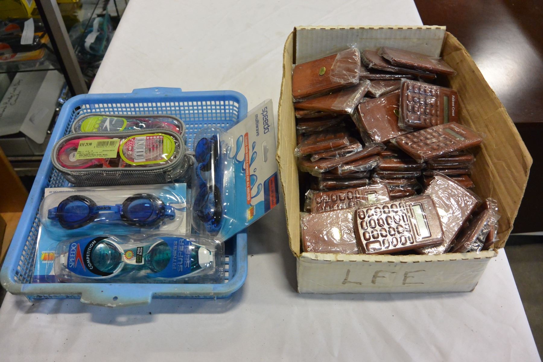 LOT OF NEW SWIMMING GOGGLES AND CALCULATORS