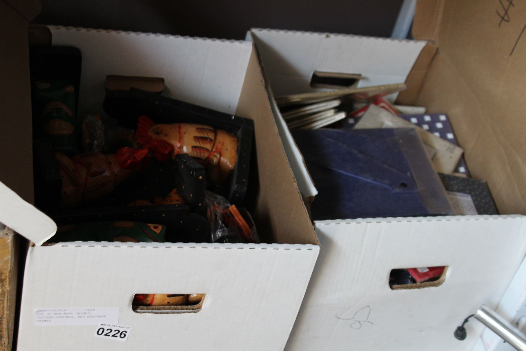 LOT OF NEW WIND CHIMES, CHICKEN FIGURES, AND KEEPSAKE FRAMES