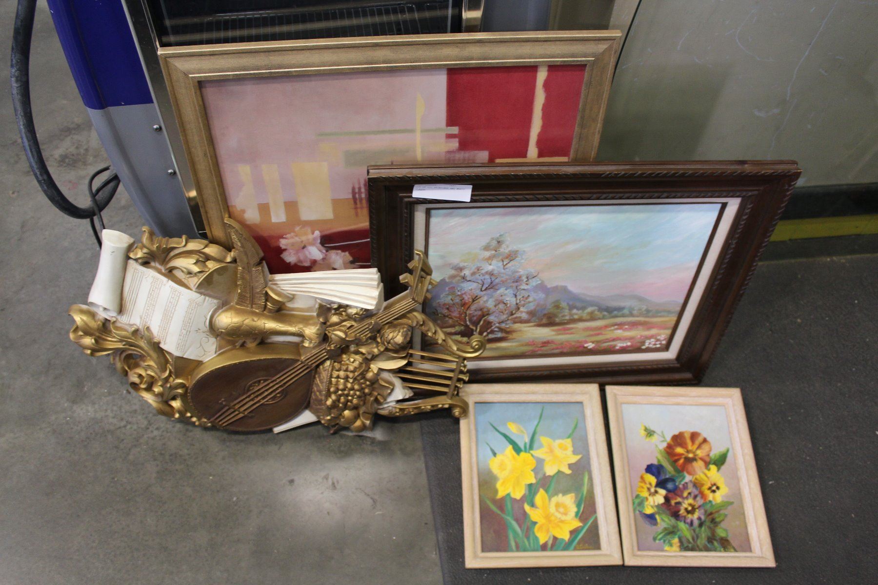 LOT OF OIL PAINTINGS AND MUSIC PLAQUE