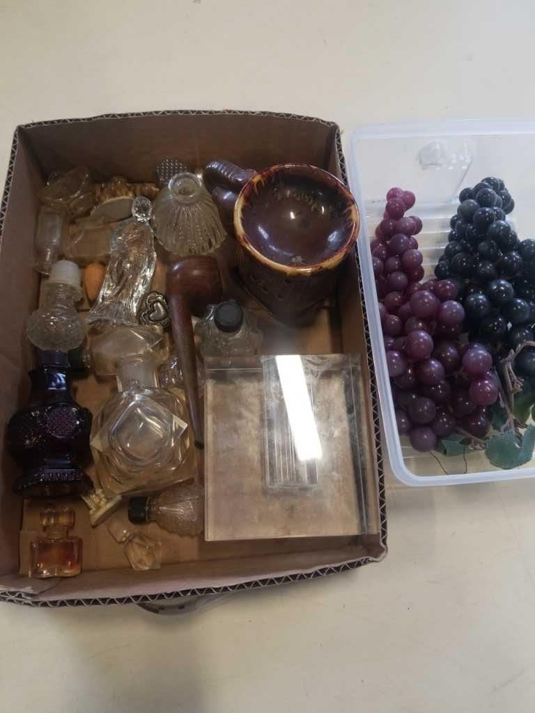 LOT OF PERFUME BOTTLES, COLLECTIBLES, ARTIFICIAL GRAPES