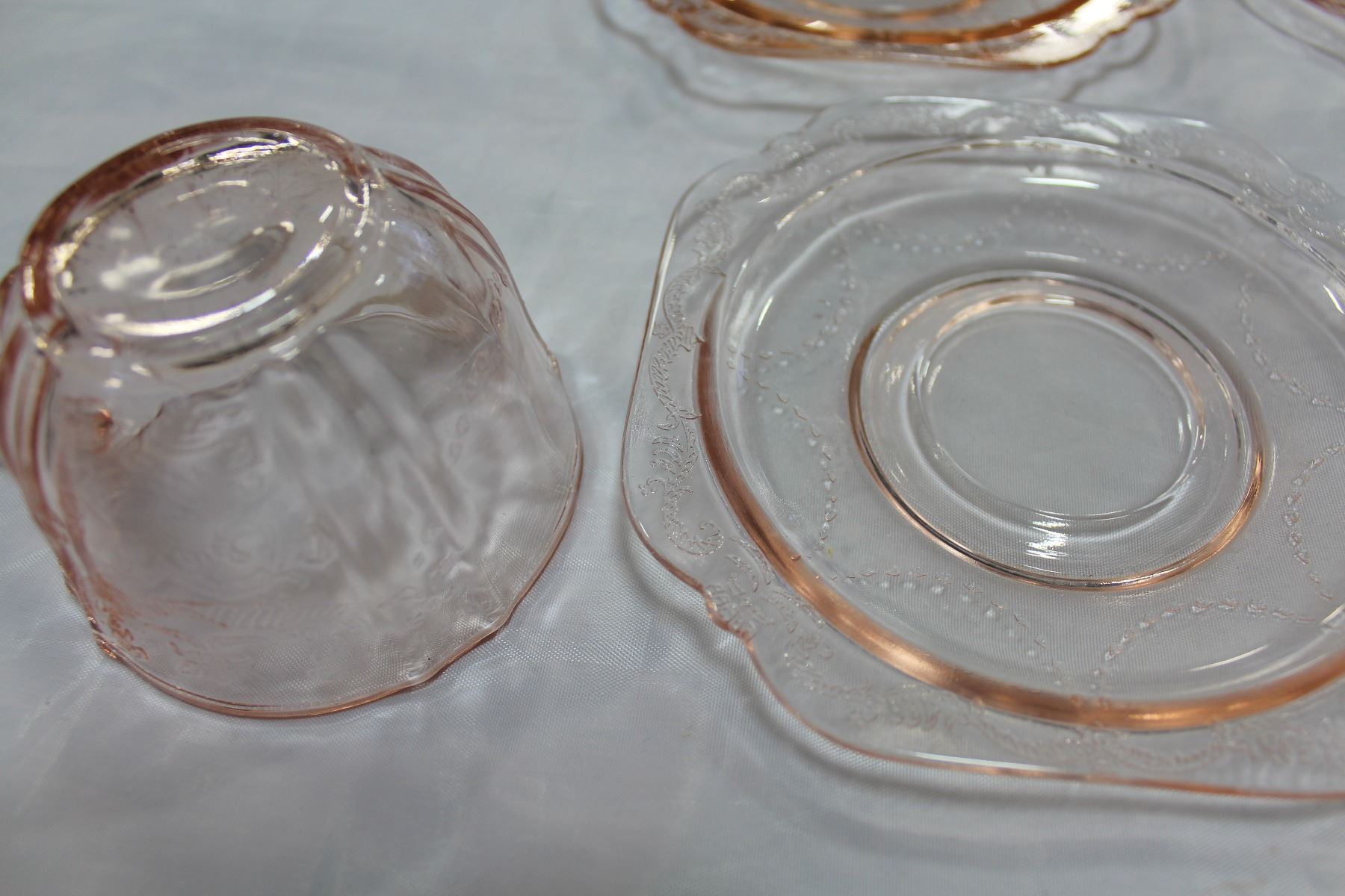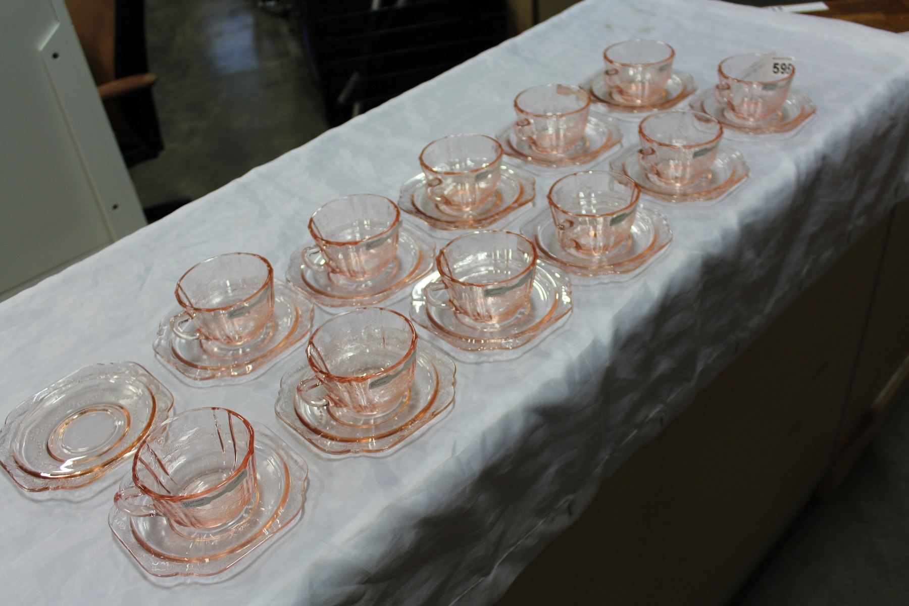 LOT OF PINK DEPRESSION CUPS AND SAUCERS