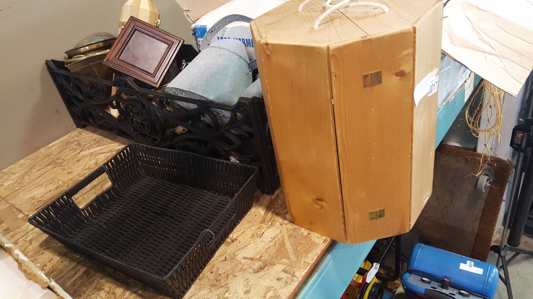 LOT OF PLANTERS, WATERING CAN, AND 6 BOTTLE WINE CASE