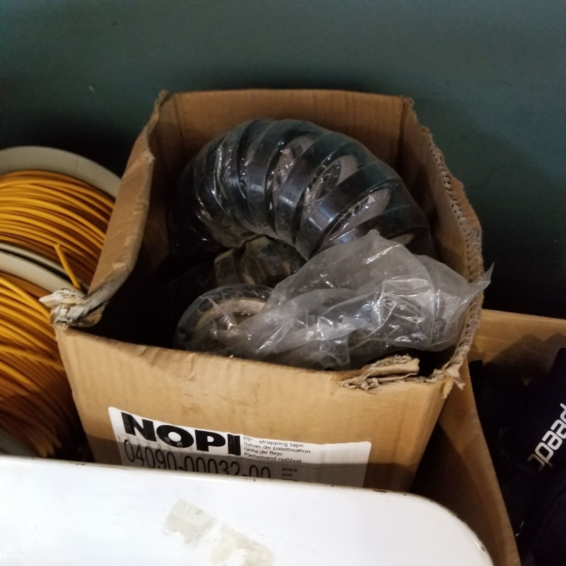 LOT OF PLASTIC WELDING WIRE, SUCTION CUP MOUNTS, BOX OF ELECTRICAL TAPE AND SCALE
