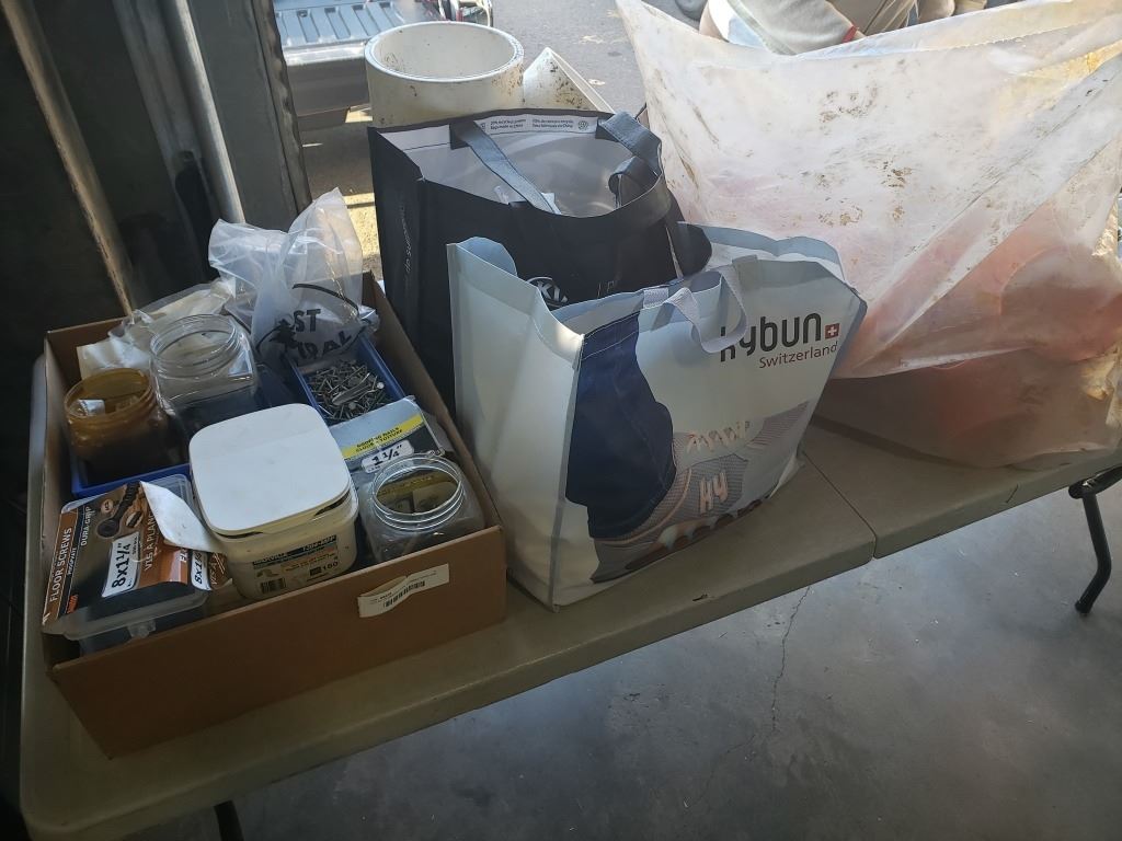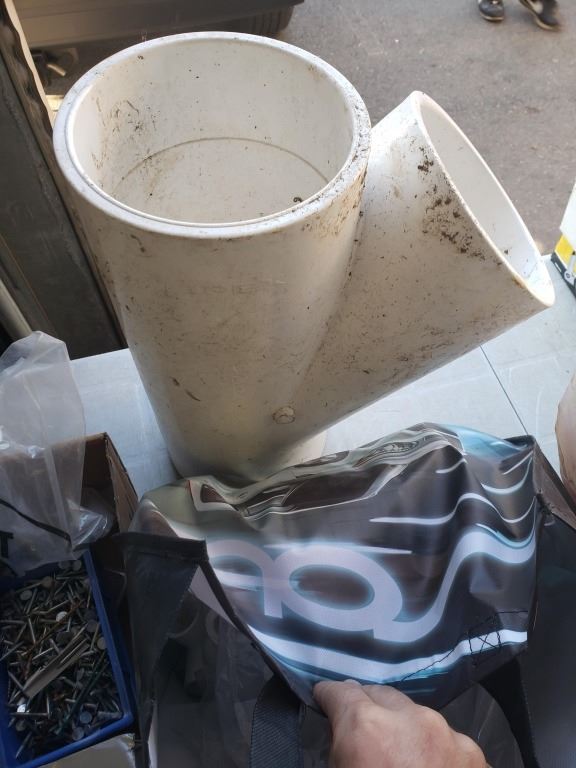 LOT OF PLUMBING PIPE CONNECTORS AND TRAY OF HARDWARE