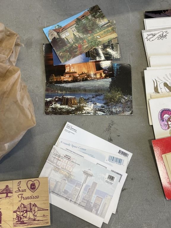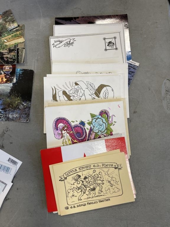 LOT OF POSTCARDS, STICKERS AND ROCK AND ROLL TRANSFERS