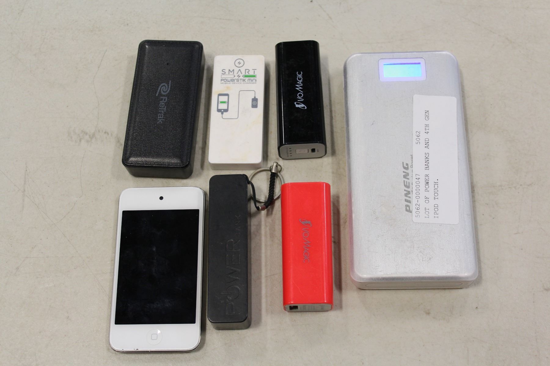 LOT OF POWER BANKS AND 4TH GEN IPOD TOUCH.