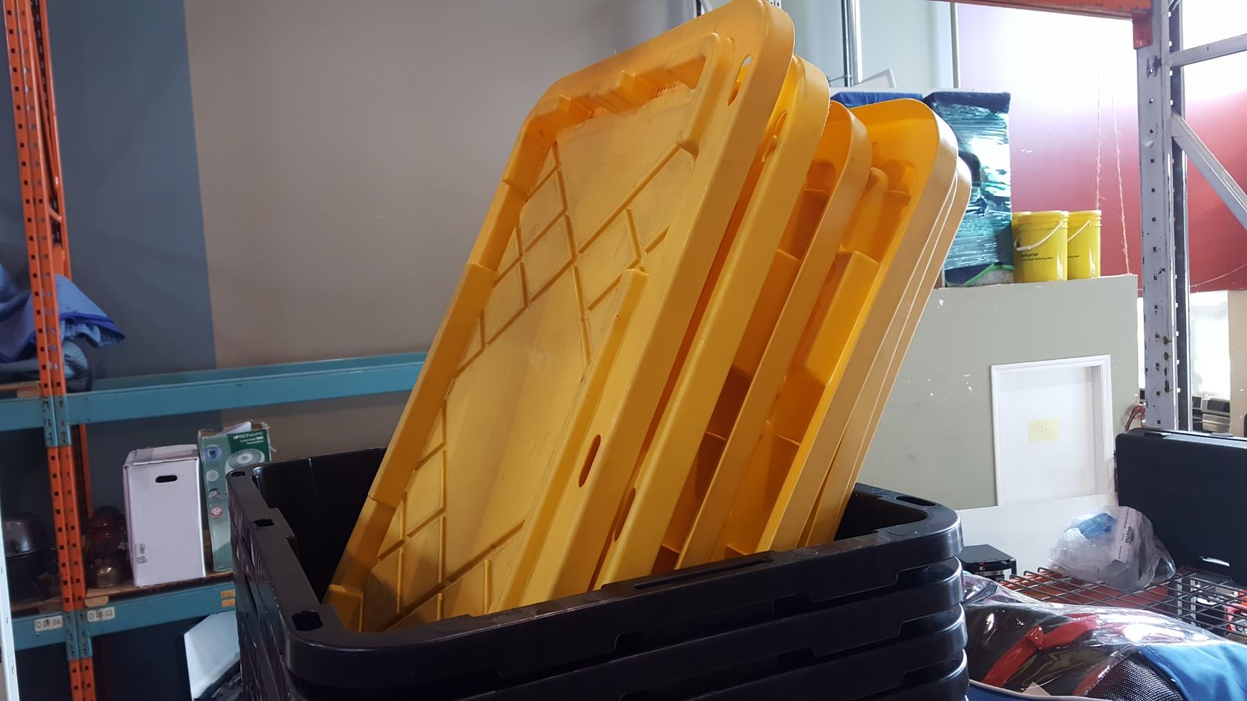 LOT OF PROFESSIONAL BOX STORAGE TOTES W/ LIDS