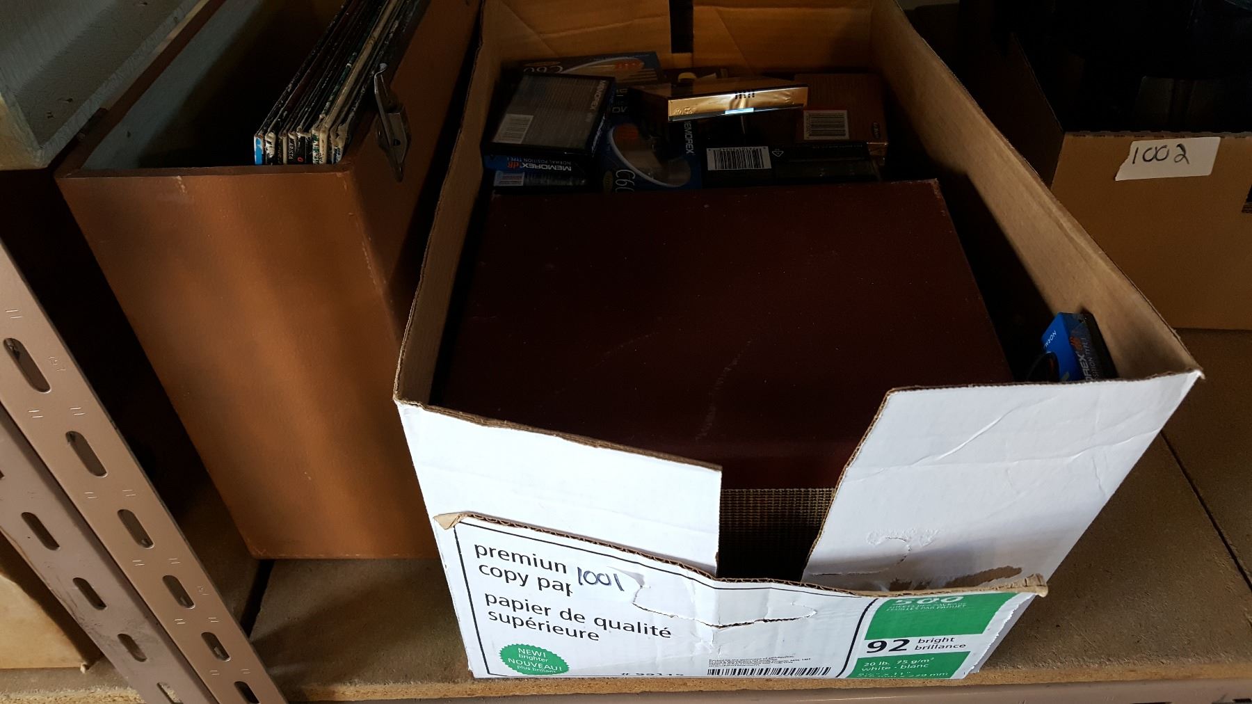 LOT OF RECORDS SEALED CASSETTE TAPES AND STANDS