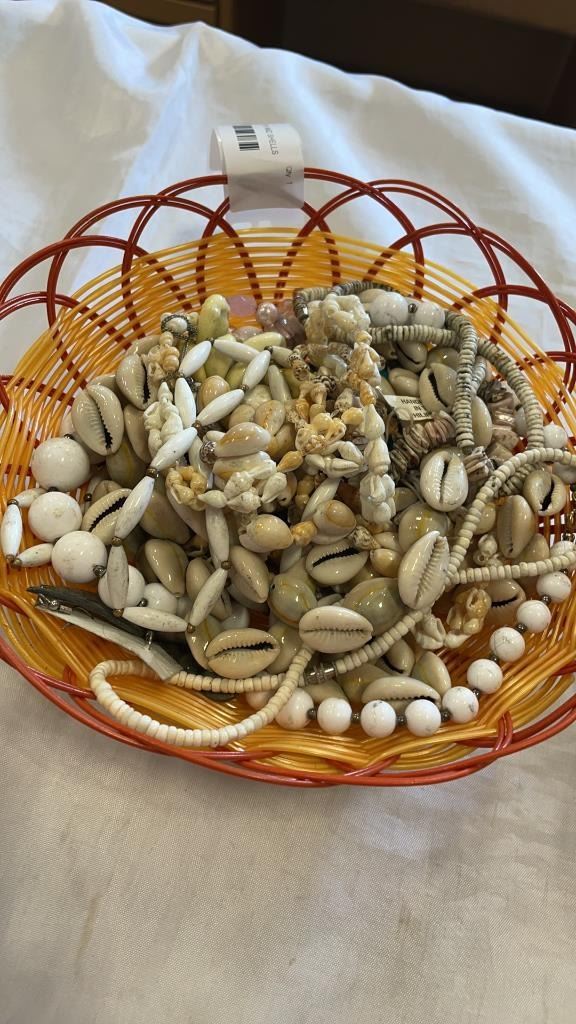 LOT OF SHELL JEWELRY AND SHELLS