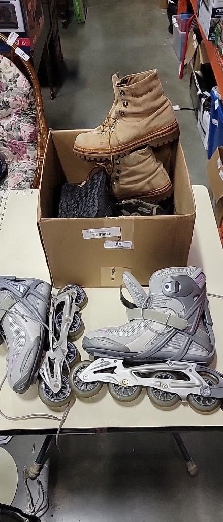 LOT OF SHOES, BOOTS AND ROLLER BLADES SIZE 10W, SIZE 45, 10M AND OTHER