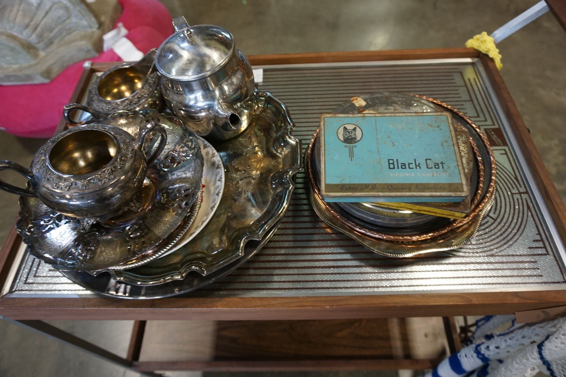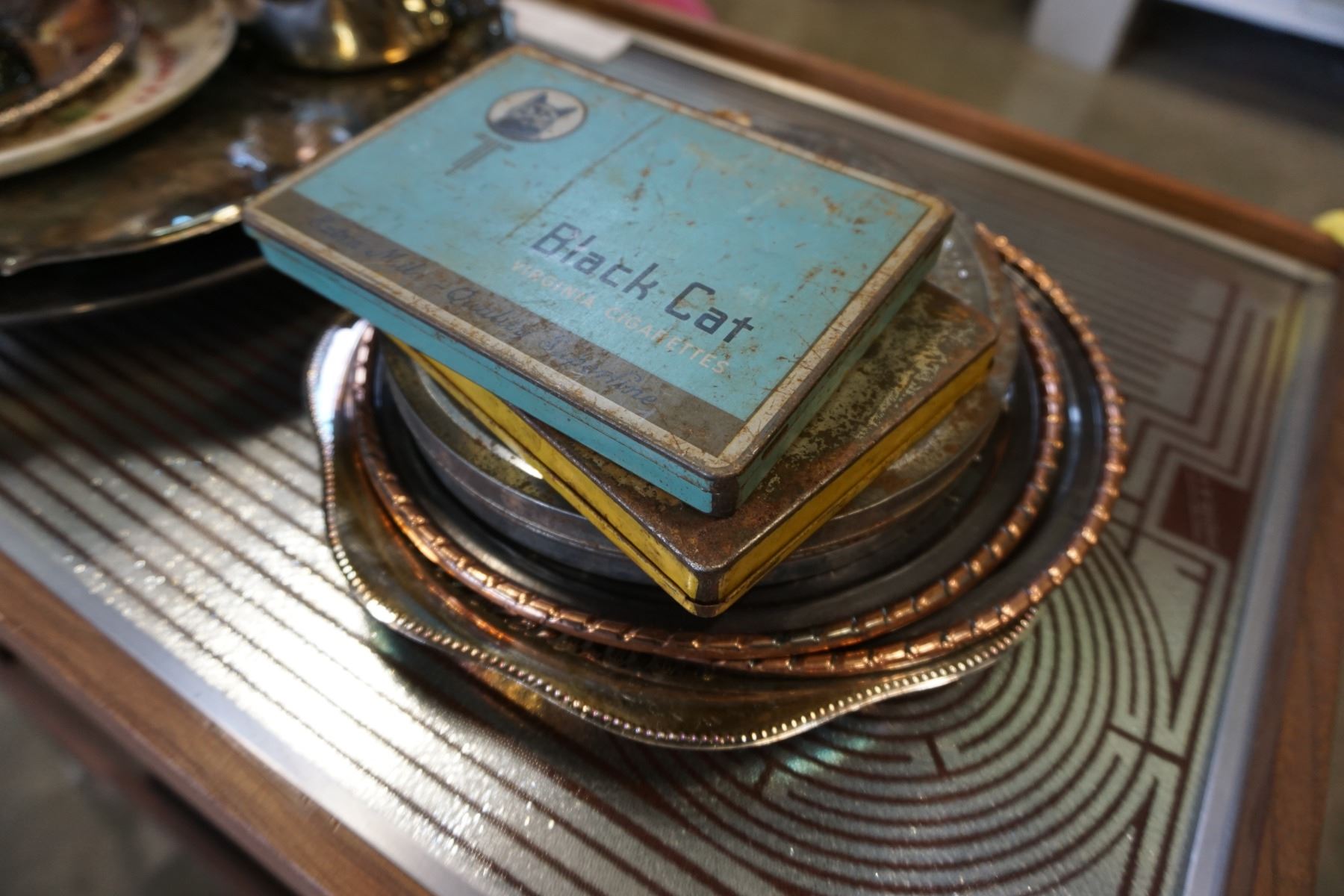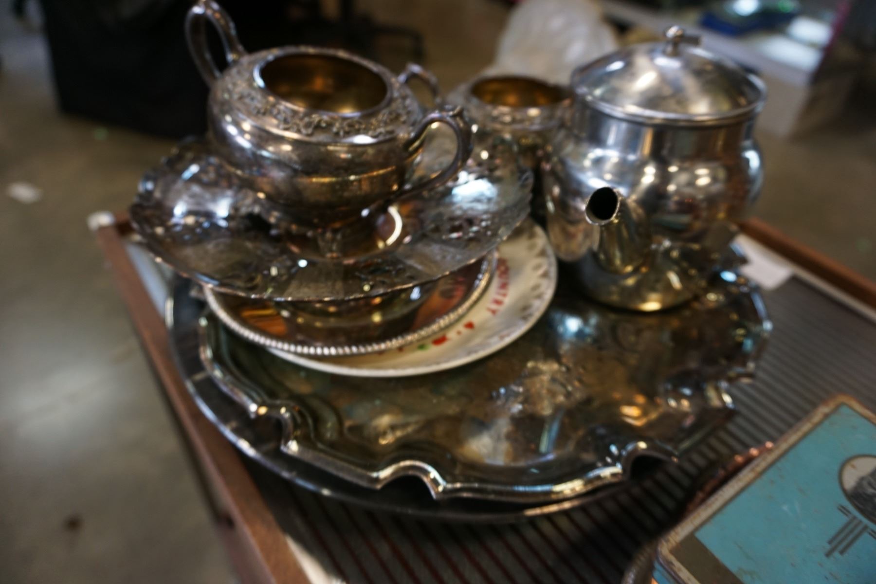 LOT OF SILVER PLATE AND CIGARETTE TINS