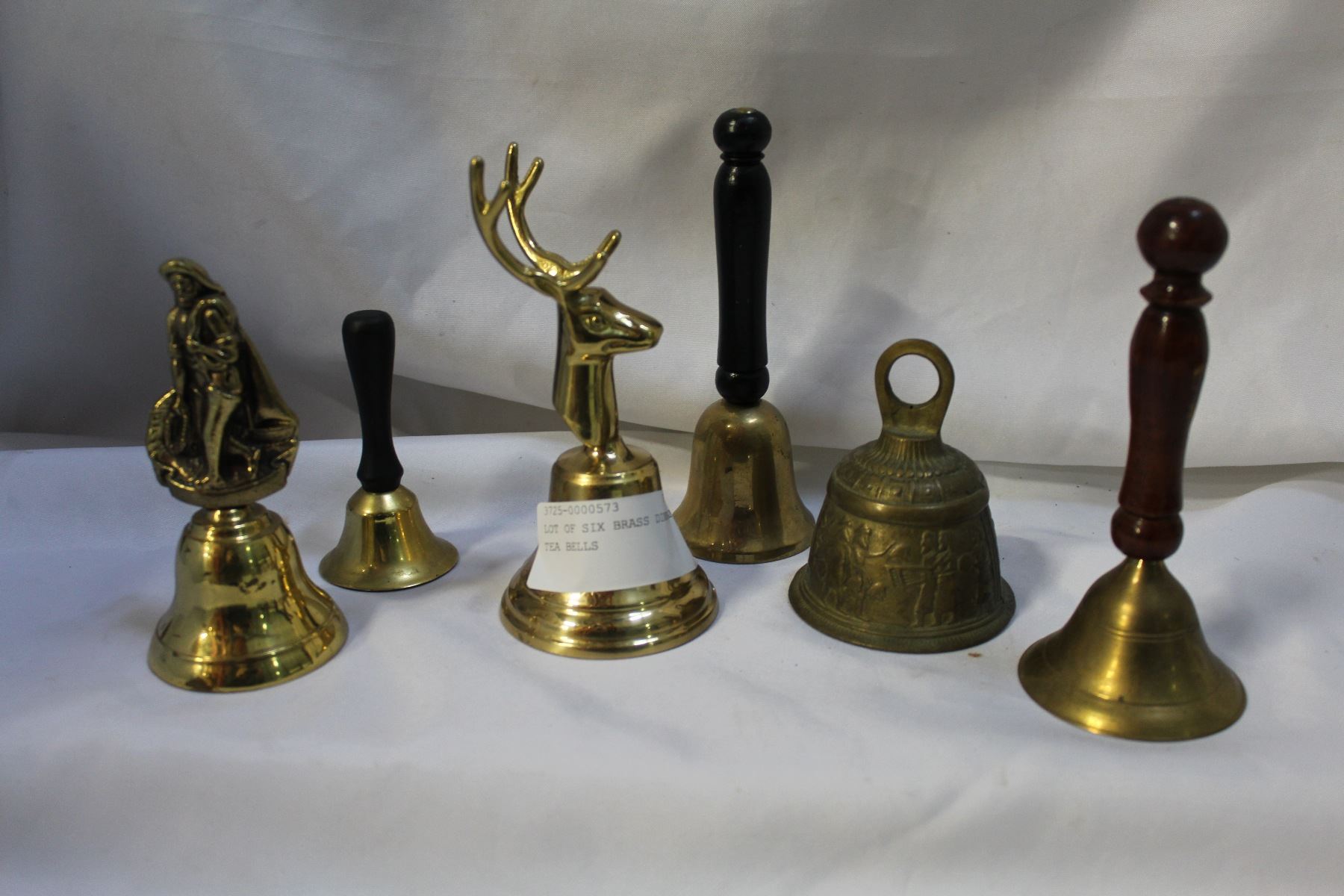 LOT OF SIX BRASS DINNER AND TEA BELLS