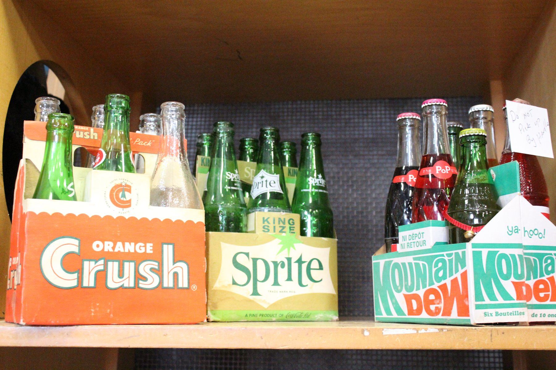 LOT OF SIX VINTAGE UN OPENED POP BOTTLES AND TWO SIX PACKS OF VINTAGE POP BOTTLES