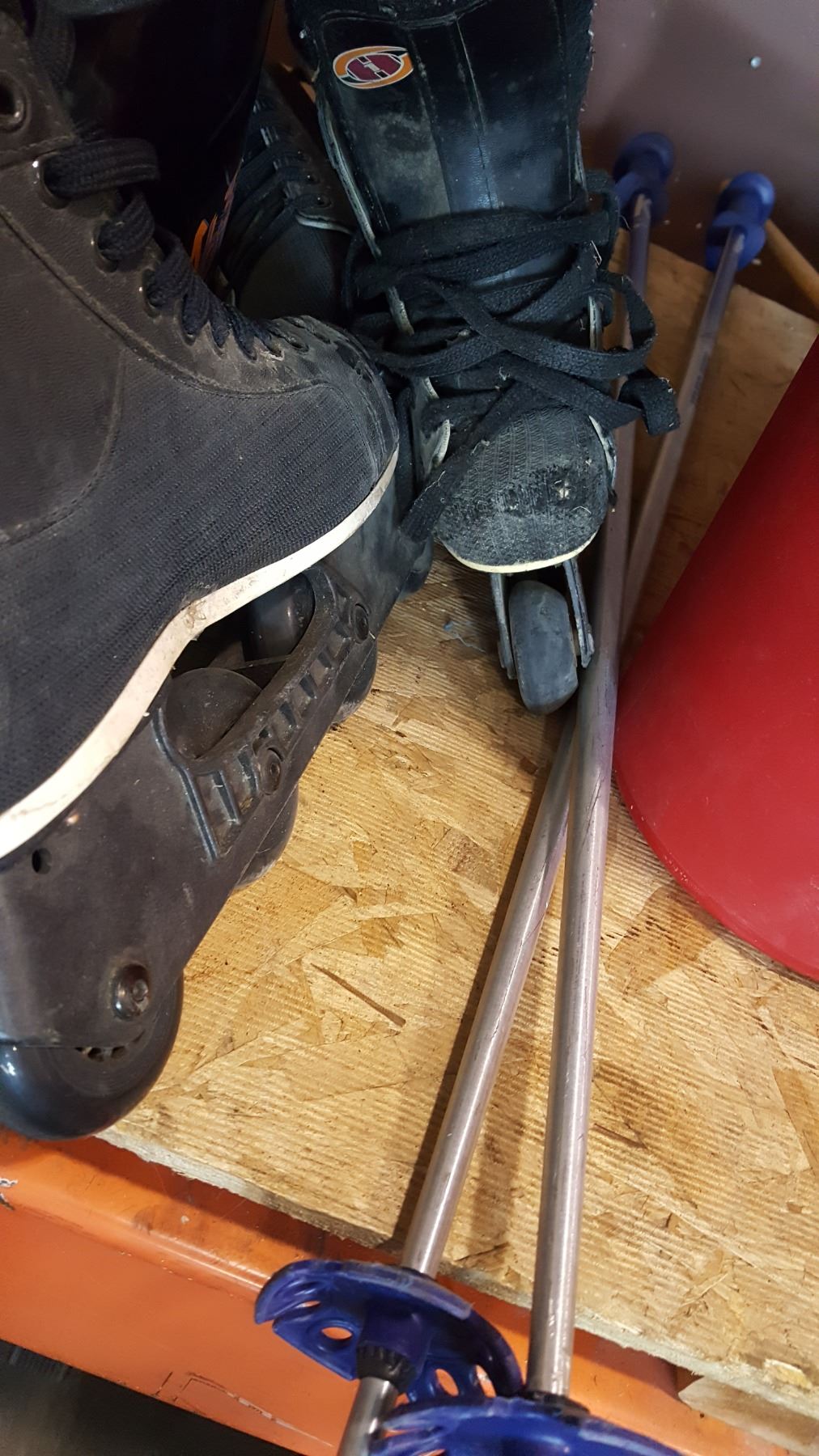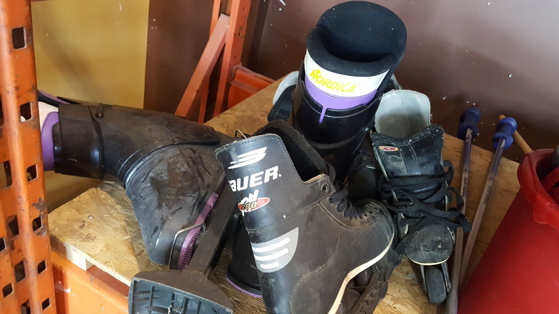 LOT OF SKI BOOTS AND POLES