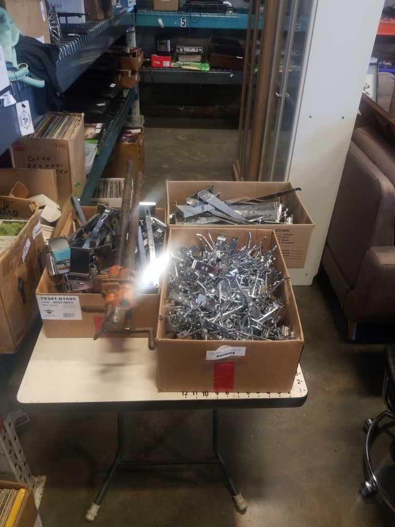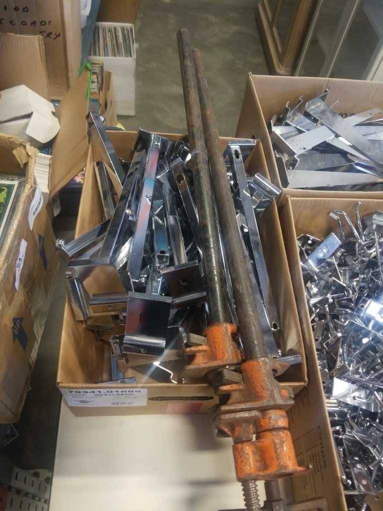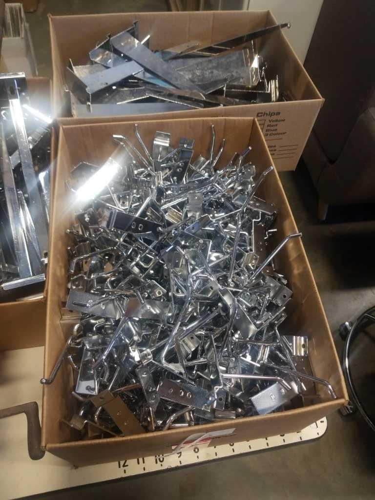 LOT OF SLAT WALL HOOKS, BRACKETS AND HANGERS