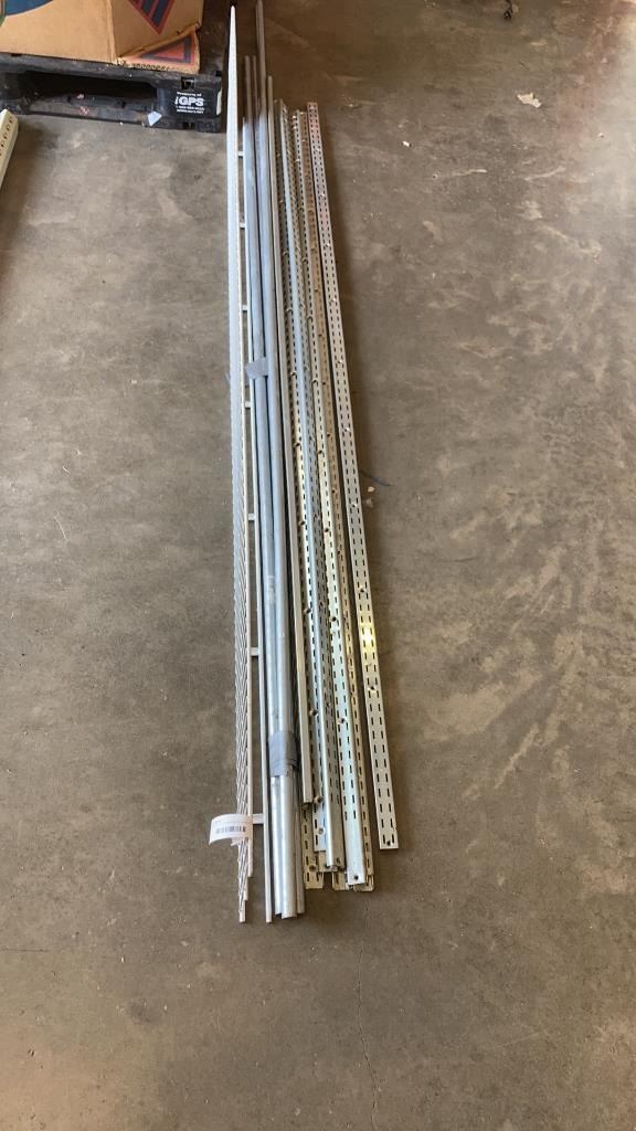 LOT OF SLOTTED SHELVING BRACKETS, GALVANIZED CONDUIT AND WIRE SHELF