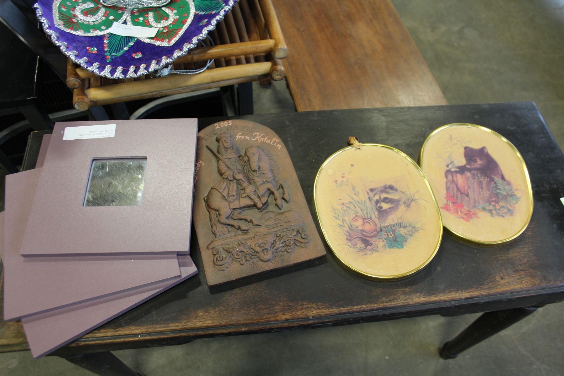 LOT OF SMALL MIRRORS AND PRINTS AND PLAQUE