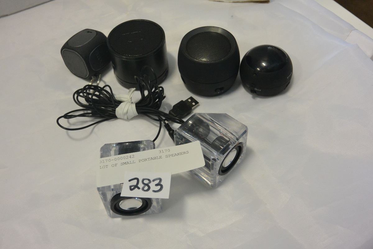 LOT OF SMALL PORTABLE SPEAKERS
