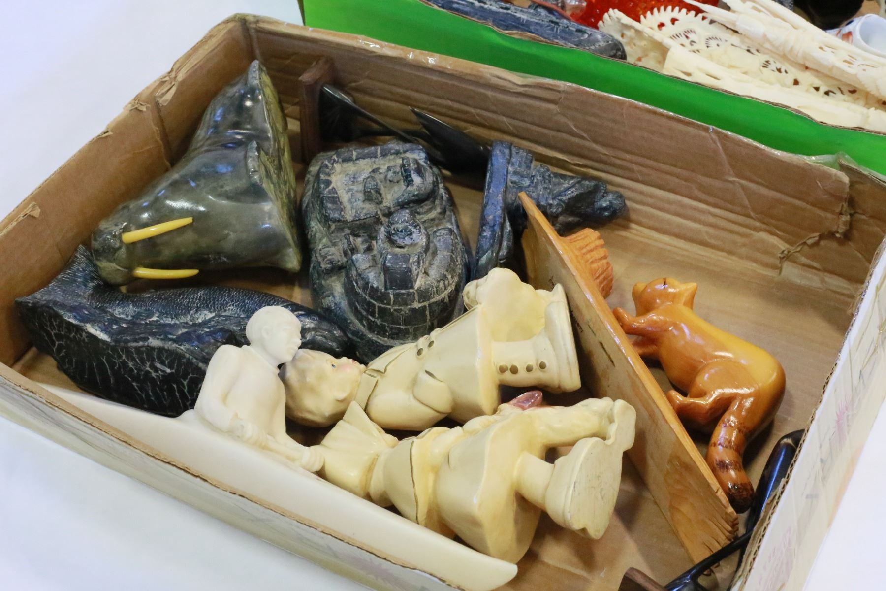 LOT OF SOAPSTONE AND CARVED FIGURES