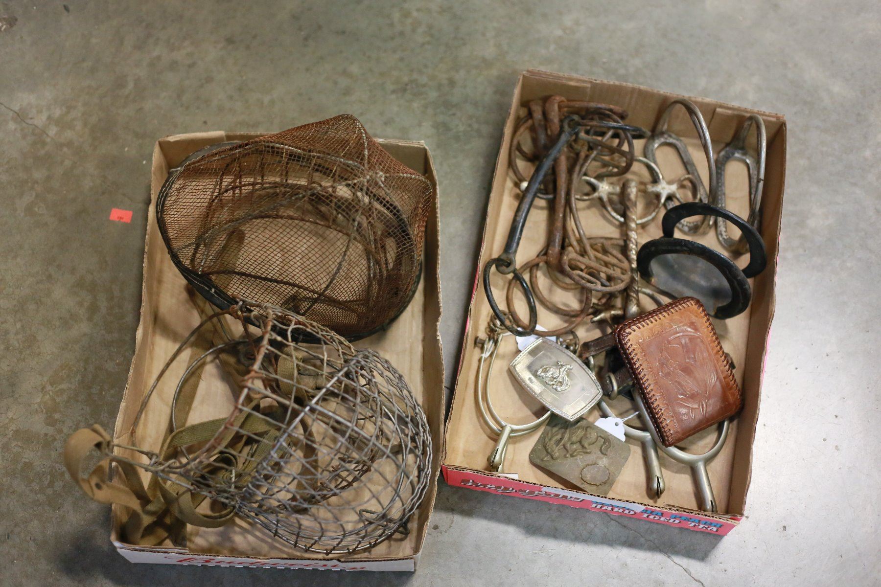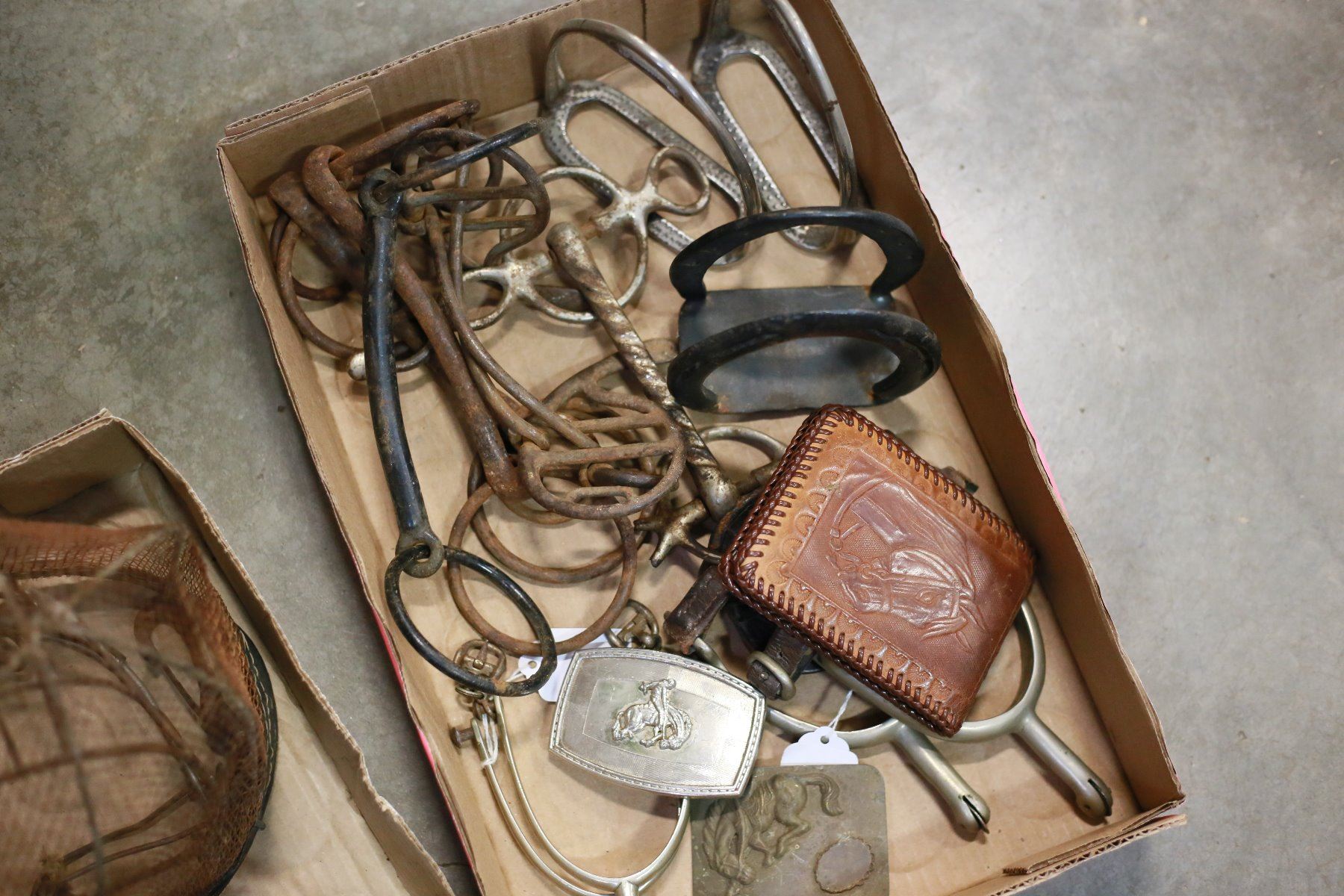 LOT OF SPURS BELT BUCKLES AND HORSE TACK
