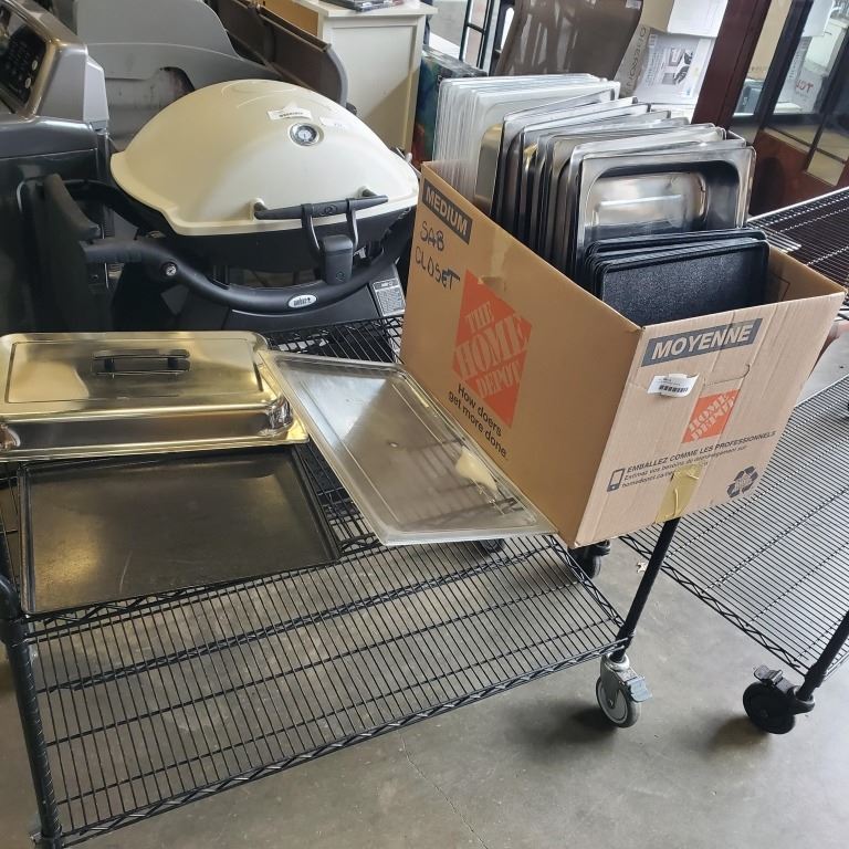 LOT OF STAINLESS SERVING TRAY LIDS AND MORE