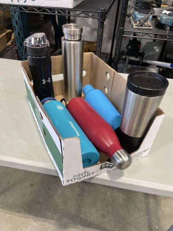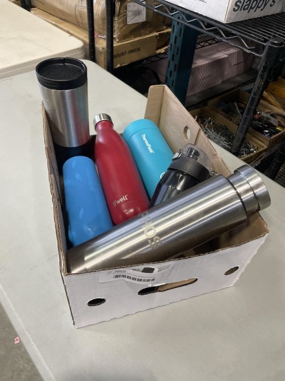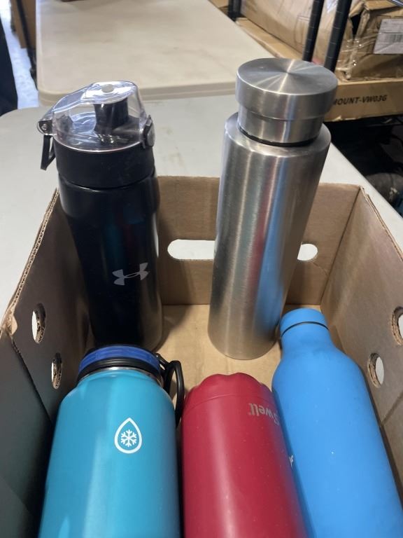 LOT OF STAINLESS WATERBOTTLES INCLUDING SWELL AND HYDROFLASK