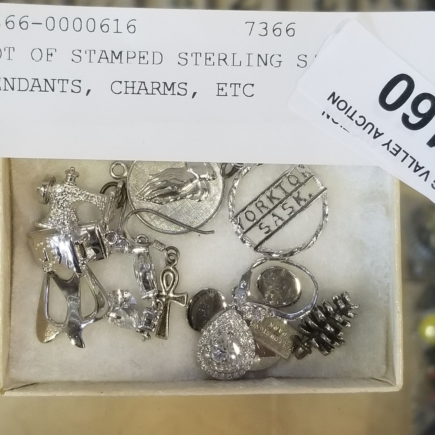 LOT OF STAMPED STERLING SILVER PENDANTS, CHARMS, ETC