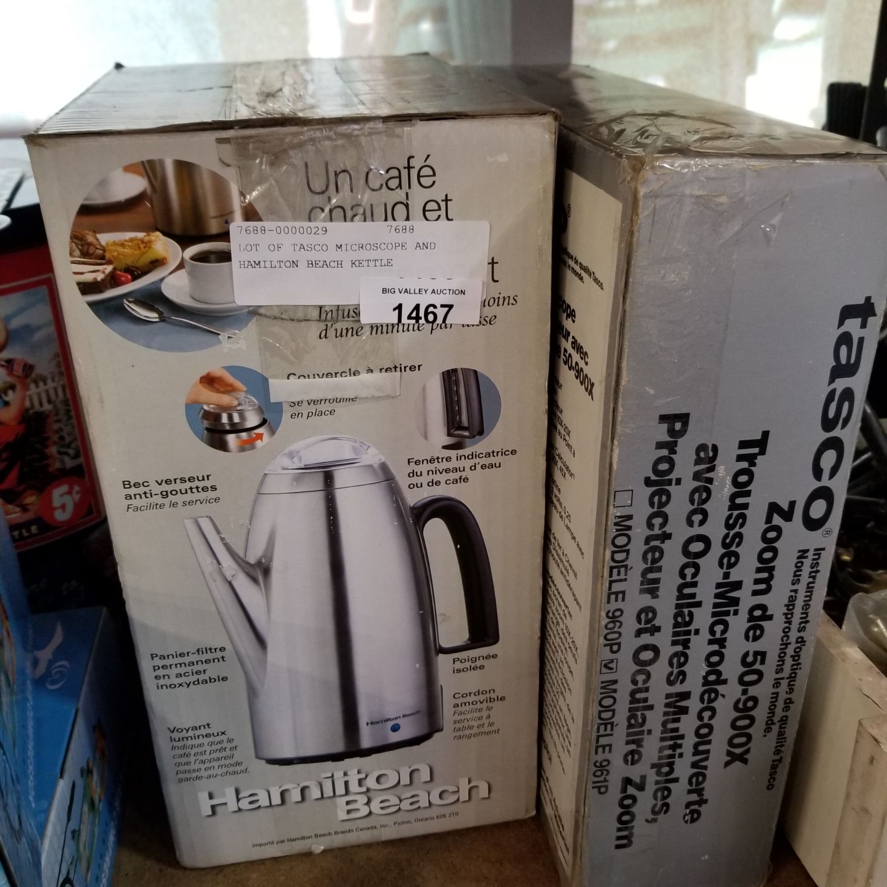 LOT OF TASCO MICROSCOPE AND HAMILTON BEACH KETTLE