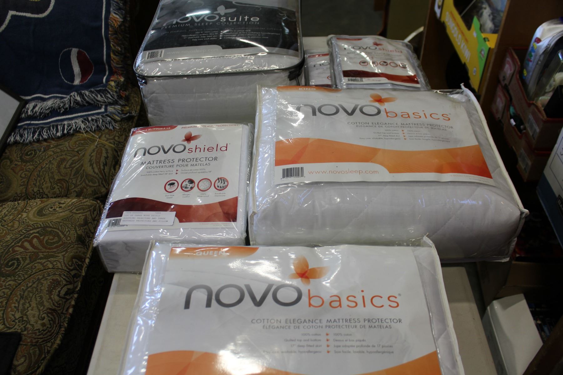 LOT OF THREE NOVA SHIELD BOXPRING PROECTORS AND THREE MATTRESS PROTECTORS AND PILLOW PROTECTOR