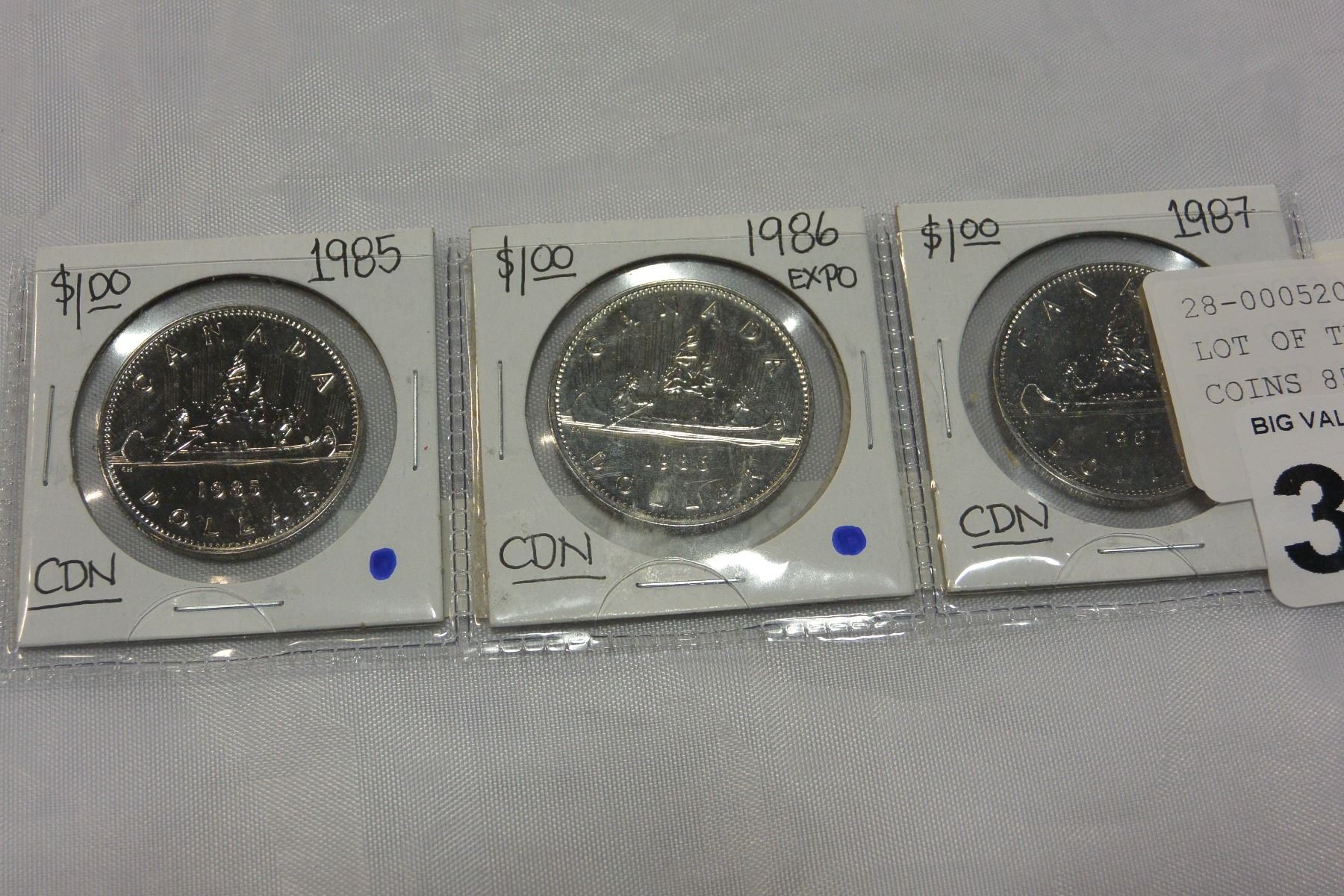 LOT OF THREE ONE DOLLAR SILVER COINS 85 AND 86 AND 87